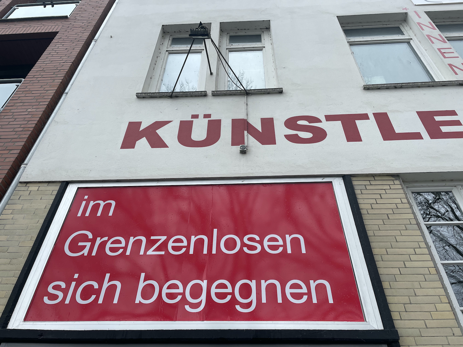 Im Rahmen der Projektreihe in sight out zeigt aktuell unsere Gaststipendiatin Debora Ando an der Fassade des Künstlerhauses ihre Arbeit Im Grenzenlosen sich begegnen aus der Serie "strategies to overcome automatic thinking". Seit 2019 hat Debora ihr Atelier im Künstlerhaus Dortmund und ist im Rahmen der Residency „Exchange Bremen/Dortmund“ bei uns zu Gast.