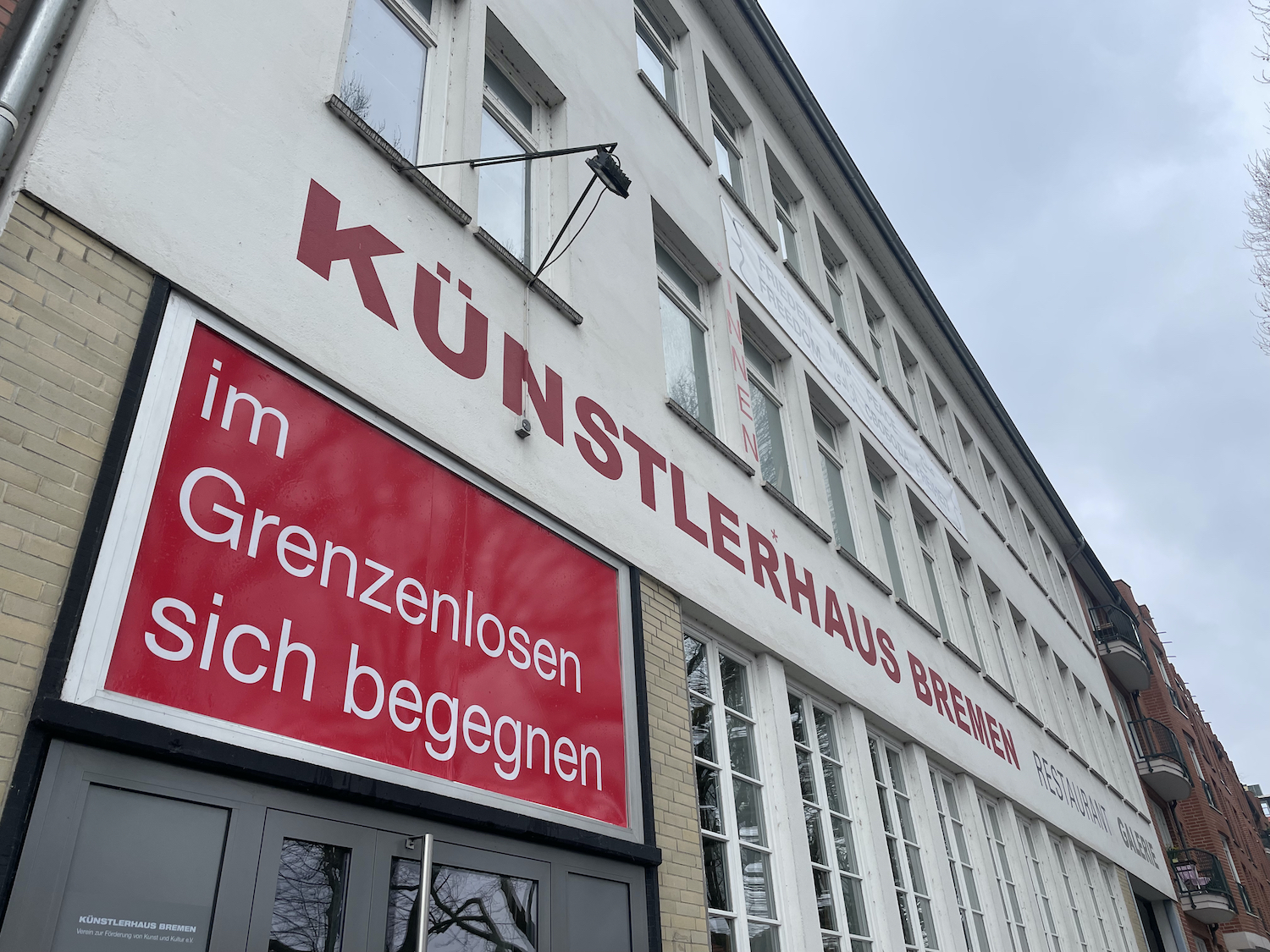 Aktuell gibt Hannes Middelberg im Rahmen der Projektreihe „in sight out“ an der Fassade des Künstlerhauses Bremen Einblick in seine künstlerische Arbeit (Ohne Titel, 2023). Middelberg arbeitet seit 2018 im Künstlerhaus Bremen. Er studierte an der Hochschule für Künste in Bremen und erhielt 2017 sein Diplom mit Auszeichnung bei Prof. Andre Korpys und Prof. Markus Löffler. 2018 schloss er sein Studium als Meisterschüler bei Prof. Rosa Barba ab. Weiter Infos zu Middelbergs Arbeiten findet Ihr auf unserer Website.