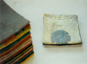 T-Shirts Ausschnitt, 1996, Keramik, Fayence, Stapel