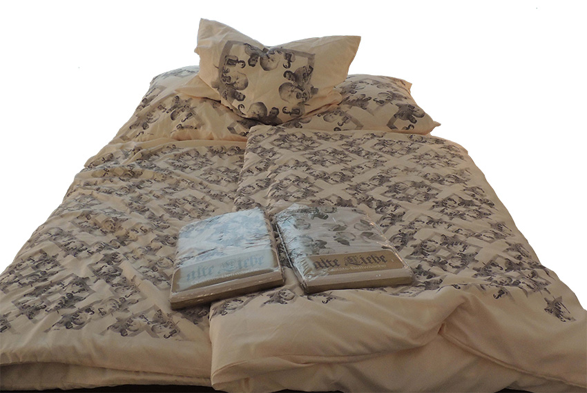 Stereotype Rollenverteilung und familiäre Verhaltensmuster im Rapport (Bettwäsche, Siebdruck)