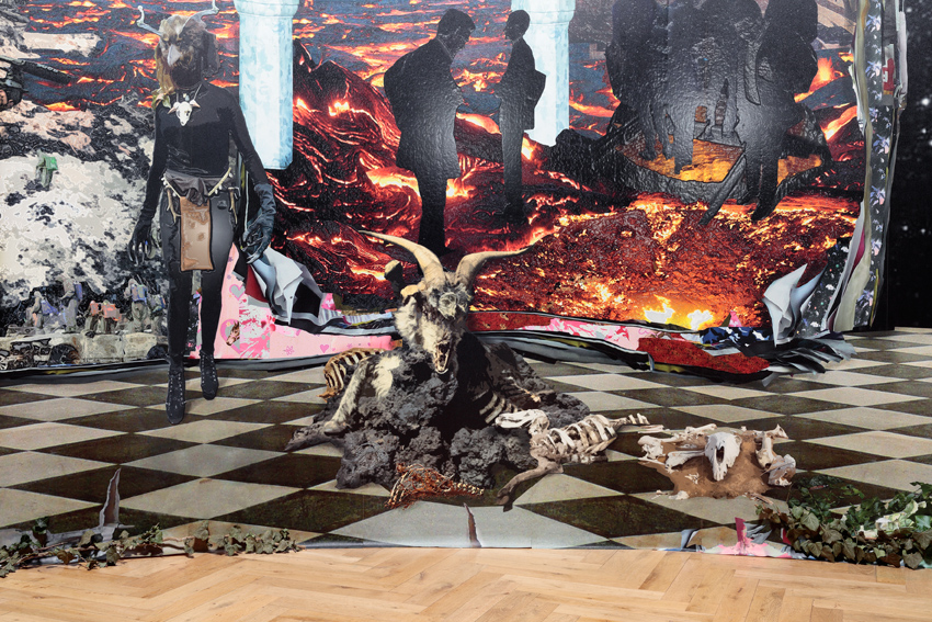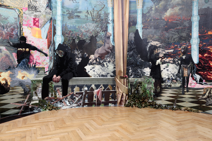 ortsspezifische Installation„Apokalypse“ 2016Stephanikirche BremenHöhe 4,20 m Durchmesser 6mPanorama aus Paletten mit Holzunterkonstruktion, Digitalprint und Efeu