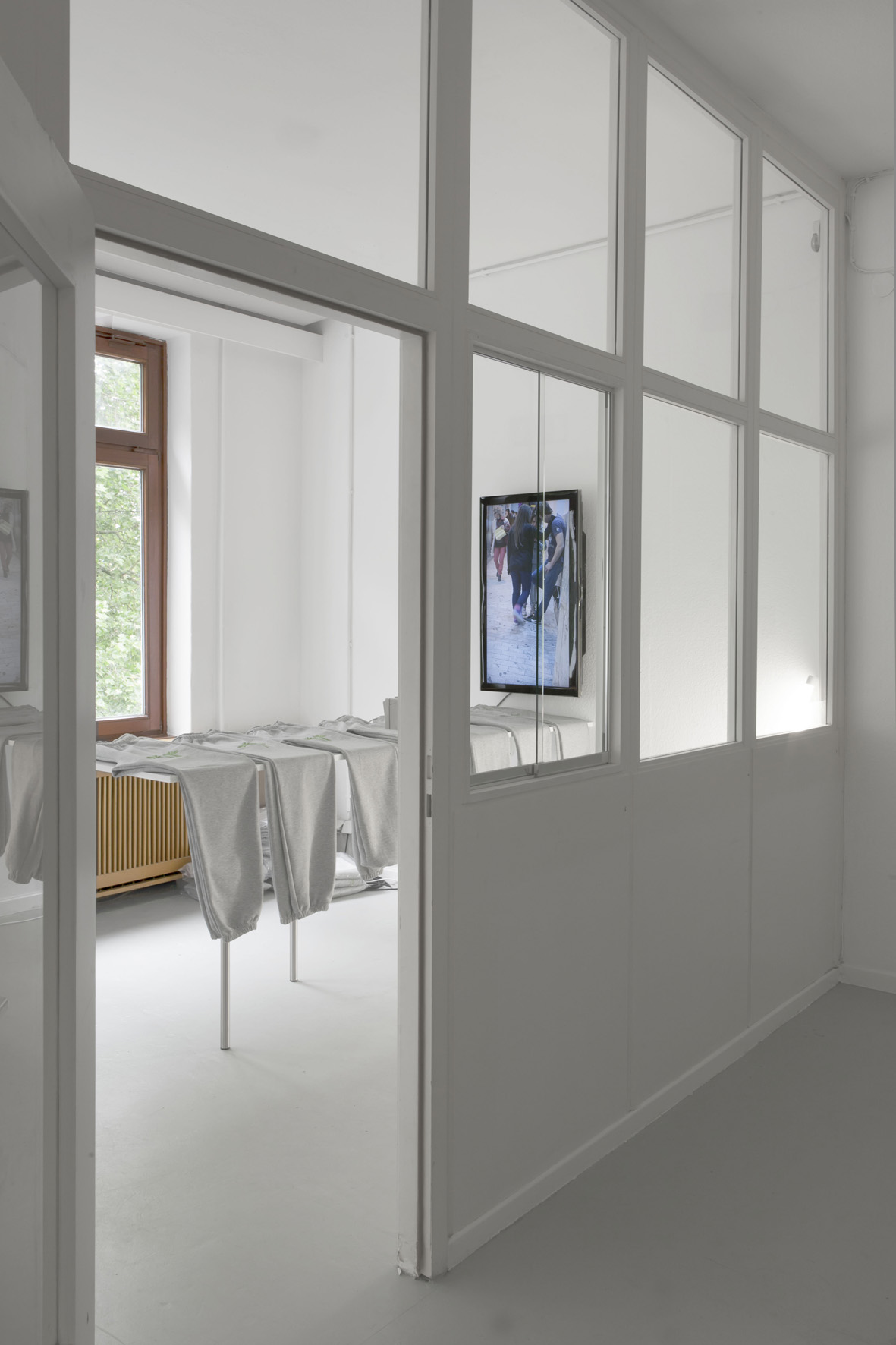 Nicht nur einzelne Künstlerateliers, sondern auch Durchgangsräume, Treppenhäuser und das Gastatelier werden bespielt. Das Gastatelier hat innerhalb des Hauses eine besondere Stellung, es ist Arbeits- und temporärer Wohnraum für Künstler_innen und steht sinnbildlich für das transitorische, auch das provisorische Bewohnen und Häuslichwerden in globaler Residenz. Beteiligt sind Künstler_innen, die im Haus arbeiten, die bereits zu Gast im Haus waren und die in anderen Städten und Ländern leben und tätig sind. Sie haben für diesen Anlass Interventionen, Performances und partizipatorische Projekte konzipiert, die die Produktionsbedingungen von Kunst reflektieren. Durch die Beteiligung des Publikums oder durch künstlerische Umarbeitungen entwickeln sich die Werke über die Ausstellungsdauer im Prozess weiter.