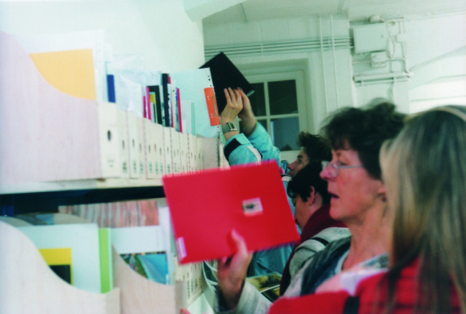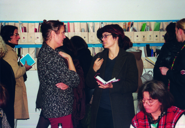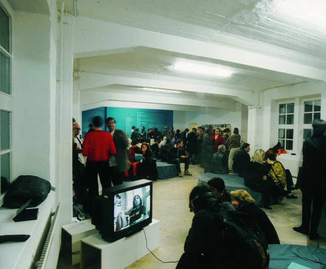 Die Ausstellung war an den Aufbau eines Archives angelehnt: Präsentiert wurden Kataloge, Publikatonen, Cds und Videos der Künstlerinnen und der Referentinnen, die für das Symposium vorgeschlagen wurden. Im Ausstellungsraum gab es zudem Abspielmöglichkeiten und verschiedene Sitzgelegenheiten wie Polster und kleine Caféhaus-Tische.