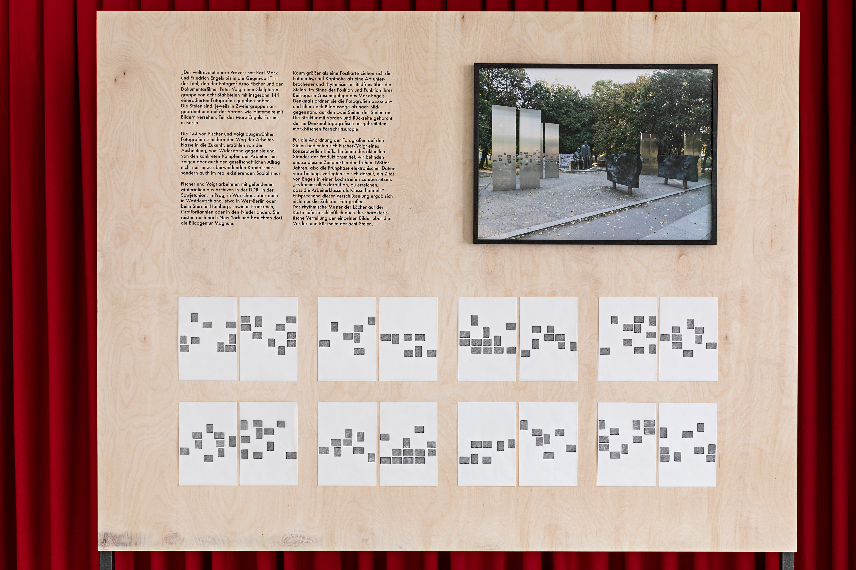 Fotografische Arbeit präsentiert Recherchen und Arbeiten aus unterschiedlichen Projekten des Künstlers Heinz Peter Knes (*1969, Gemünden am Main) und setzt diese in ein neues Verhältnis zueinander. Die Einzelausstellung umfasst Ausschnitte aus Knes' Fotoarchiv, filmisches Material und Text. An der Wand entfaltet sich der fotografische Prozess: Fotos bilden Cluster, sind aus ihrem ursprünglichen Kontext gelöst und generieren durch neue Konstellationen eine Reihe an formalen, sozialen und politischen Erzählungen. Durch den Raum ziehen sich drei Stationen, in denen geschichtliches Material in seine Bedeutungsebenen aufgefächert wird und entlang des Begriffs „Arbeit“ auch im Hinblick auf das politische Handeln gelesen werden können. So verbildlicht Knes Ephemera aus Hannah Arendts Archiv, befasst sich mit den Fotografien aus dem Denkmalensemble des Marx-Engels-Forums in Berlin, in denen von den Kämpfen der Arbeiterklasse erzählt wird und betrachtet Tilman Riemenschneiders Werk zur Zeit des Bauernkrieges. Zum Teil ursprünglich als Buchprojekte angelegt, wird dieses Material erstmals im Ausstellungskontext vertieft.