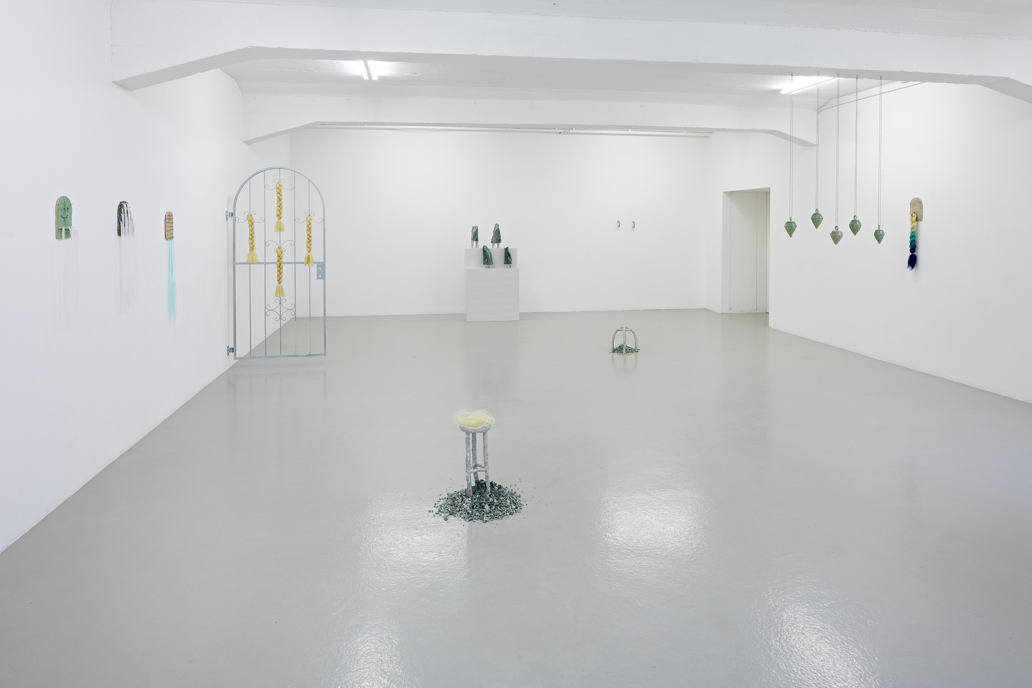 Irene Strese präsentiert ihre Arbeiten in Form einer ortsspezifischen Installation, in dem auch Ambivalenzen innerhalb ihrer künstlerischen Praxis sichtbar gemacht werden: Handwerkliche und bildhauerische Verfahren werden industriellen Materialien gegenüberstellt und gar miteinander verflochten, sowie Spuren aus künstlerischen und industriellen Produktionsprozessen offengelegt. Das skulpturale Ensemble fügt sich zu einem Setting aus kleinteiligen Keramikobjekten und raumgreifenden Elementen.