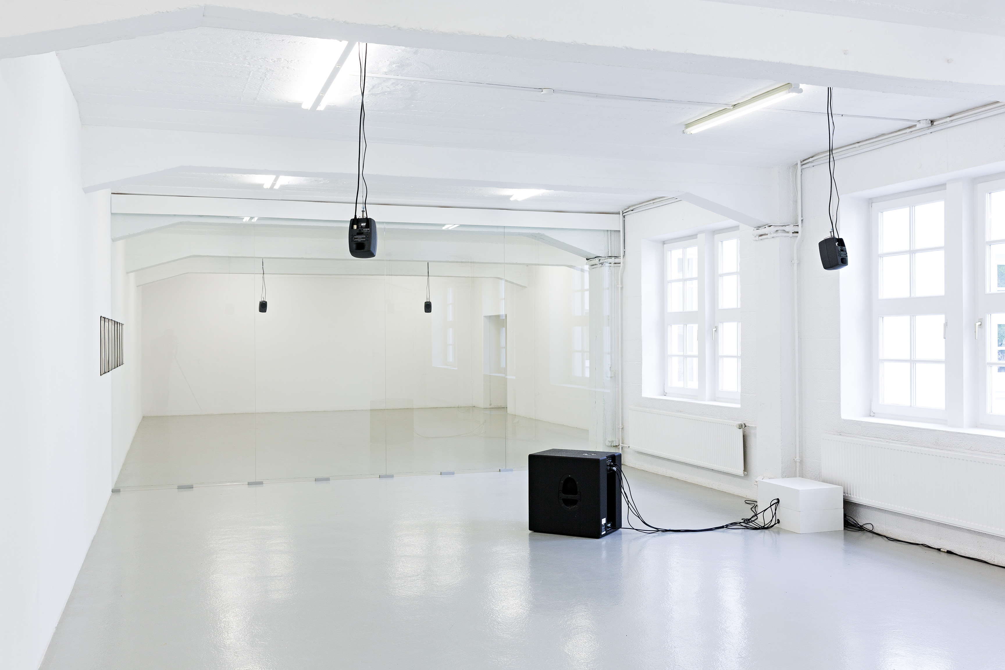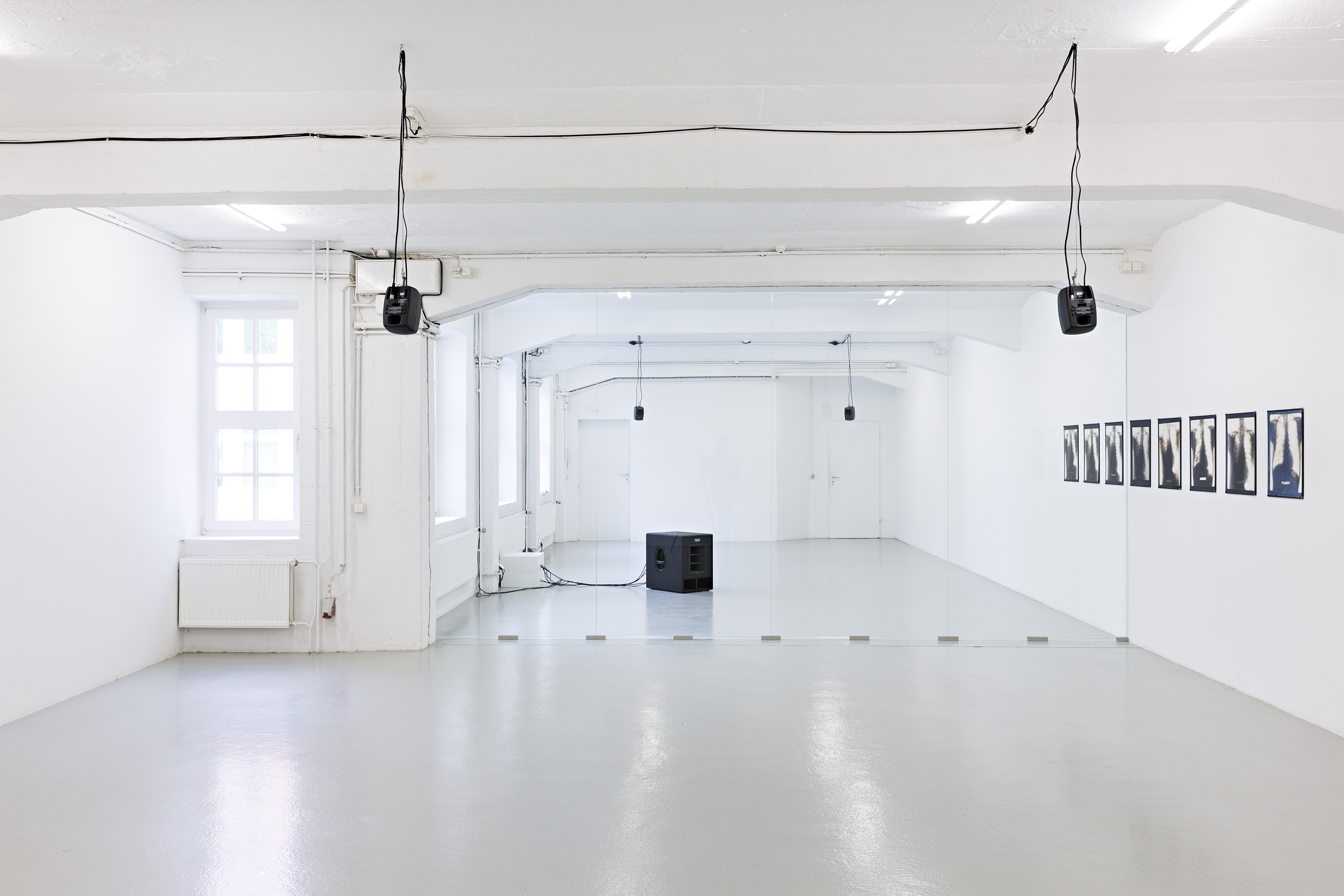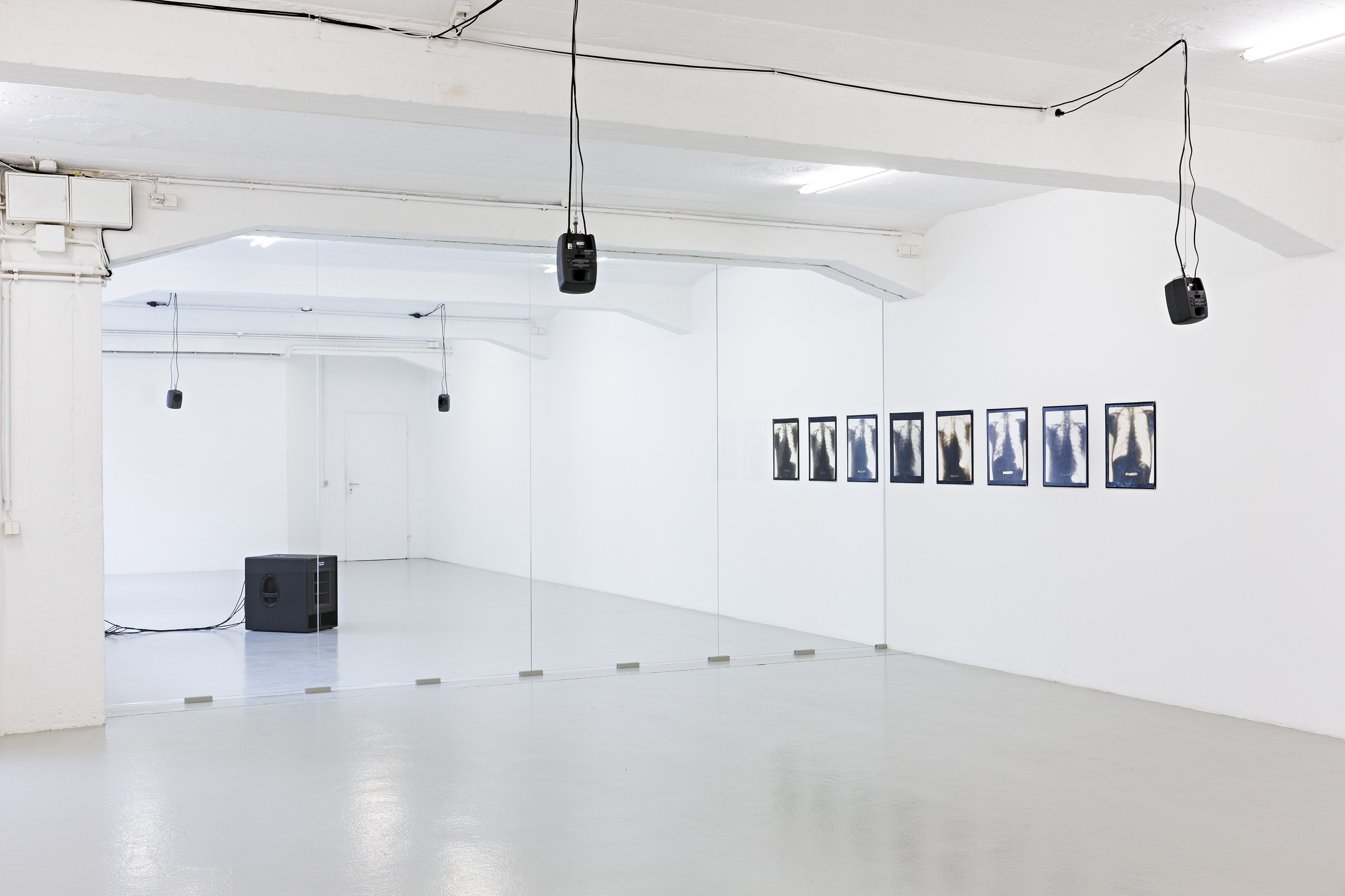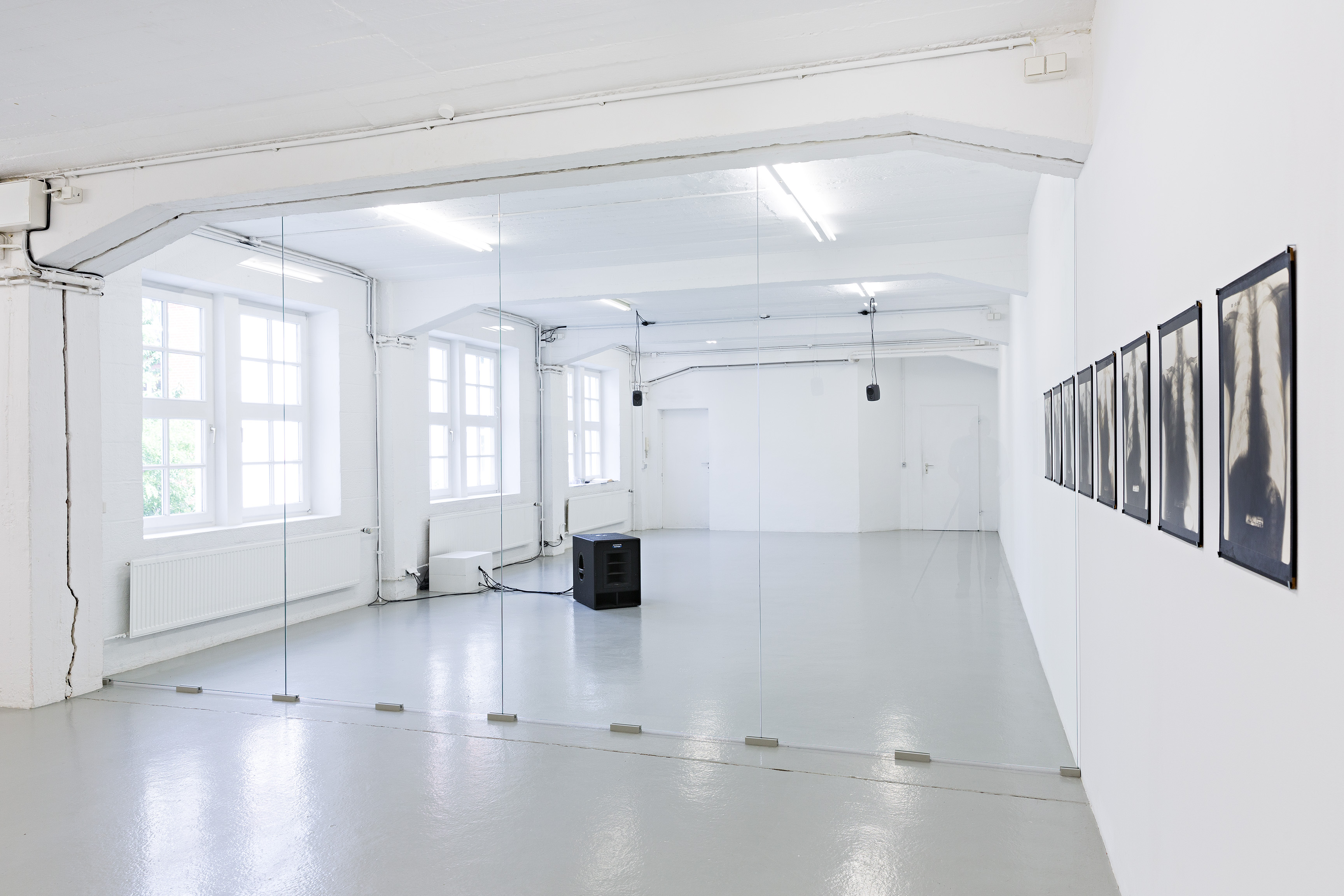 Für das Künstlerhaus Bremen hat die deutsche, in London lebende Künstlerin ein neues Projekt entwickelt, das sowohl installativ als auch akustisch agiert und die Präsenz der Transparenz in der heutigen Gesellschaft reflektiert. Über ihre Materialeigenschaft hinaus ebnet Transparenz den Weg für einen phantasierten, unbegrenzten Zugang zu Informationen aller Art und zum Anderen. Ihre Eigenschaft, getrennte Räumlichkeiten in einem Blick erfassen zu lassen ohne sie zu begehen, wird von Hermsdorf dem Motiv des Doppelgängers gegenübergestellt – ein Protagonist, der sich gleichzeitig an zwei Orten befindet. Häufig in der Literatur und der bildenden Kunst der deutschen Romantik zu finden, bildet er ein nie vollständig erfassbares, undurchdringliches Pendant zur Allgegenwart des systematischen, informationssammelnden Blickes. Er ist in der Performance und in einer Audio Arbeit präsent, die im Riss zwischen dem Sichtbaren und dem Inneren handeln und Fragen zur Zirkulation, Zugänglichkeit und Entgrenzung aufwerfen. Die von der Transparenz verursachte Trennung zwischen visueller und körperlicher Erfahrung wird ebenfalls im Titel angedeutet: Er weist auf die Reduzierung des Körpers auf das Auge hin und auf die vermeintliche Macht, die mit der Möglichkeit assoziiert wird, alles sehen zu können.
