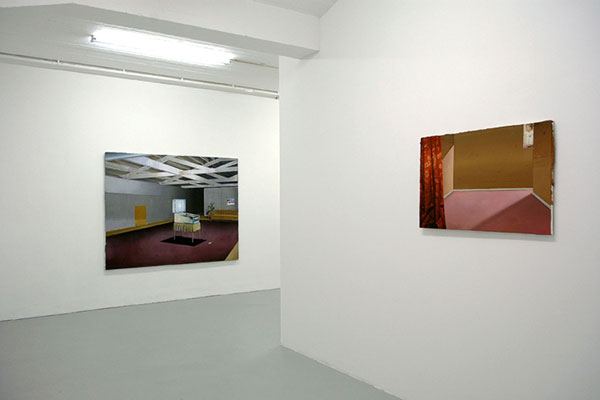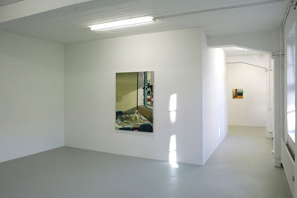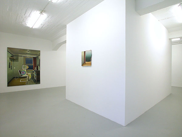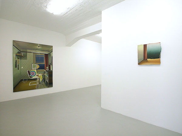 Matthias Weischer malt Interieurs – menschenleer und nur mit wenigen Möbeln und Gegenständen bestückt. Der Betrachter befindet sich unmittelbar selbst im Raum, dessen spärliches Inventar gleichzeitig vertraut und befremdlich wirkt. Die Innenansichten lassen sowohl an Abwesenheit als auch an Anwesenheit denken. Als habe jemand das Zimmer eben erst verlassen oder wird es im nächsten Augenblick betreten. Damit sind Weischers Räume narrativer Ausgangs- und Endpunkt zugleich: Sie verweisen auf etwas, was sich ereignet hat oder noch geschehen wird. Zeit und Licht gefrieren zur unbeweglichen Materialität der Farbe, die jeden Augenblick zu bersten scheint. Inmitten dieser erstarrten Gegenständlichkeit drängen pure Gesten der Malerei den Blick des Betrachters an die Oberfläche, zur Wahrnehmung des Bildes als abstrakte Malerei. Die pastosen Farbaufträge und vielfachen Farbschichten erheben sich über den Rand der Leinwand hinaus und lassen die Arbeiten zu taktilen, skulpturalen Objekten werden.