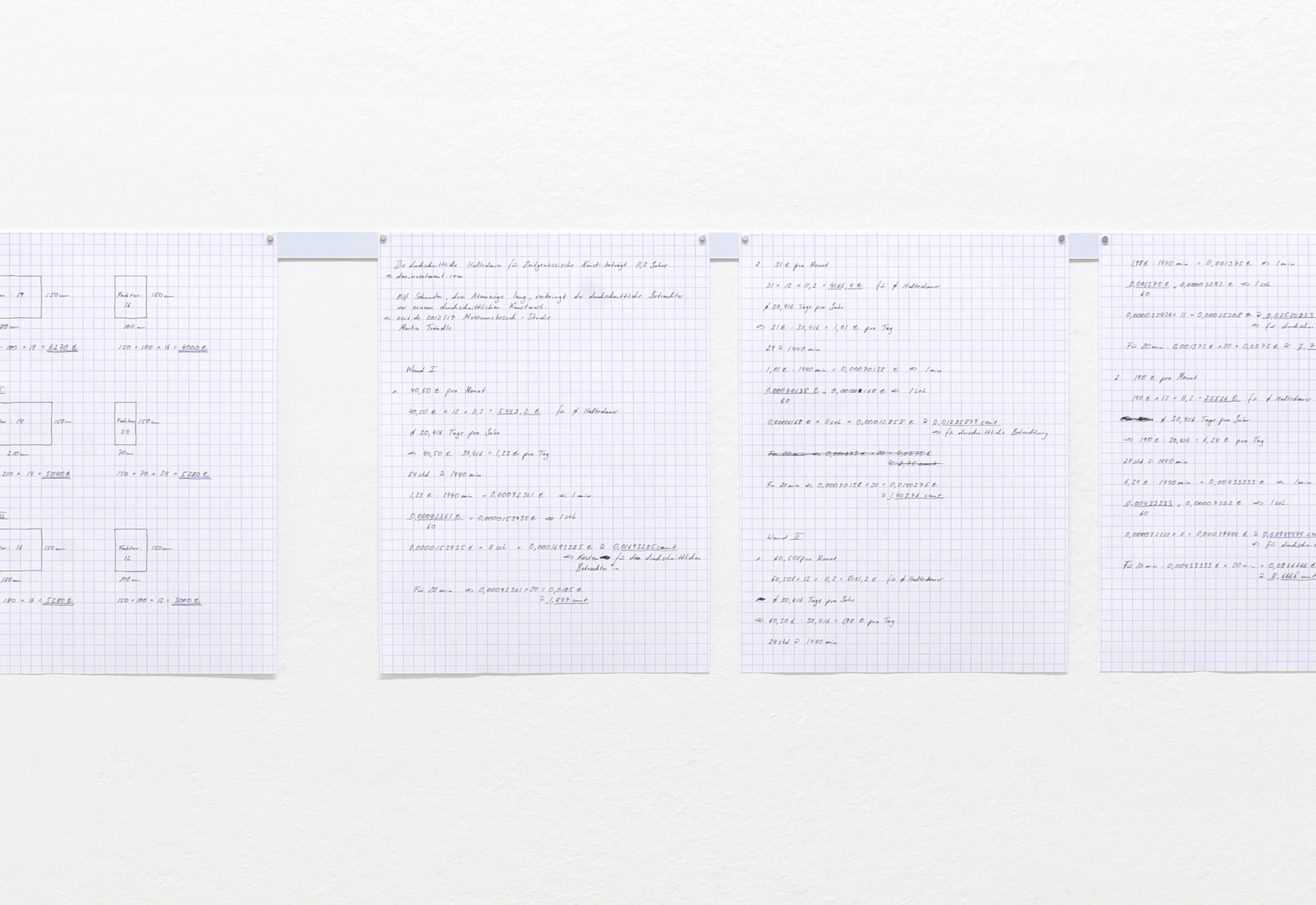 Nora Olearius’ Arbeiten beschäftigen sich mit der Berechnung und Bedeutung von Zahlenwerten und deren Konstruktion im Kontext künstlerischer Produktion und Präsentation.