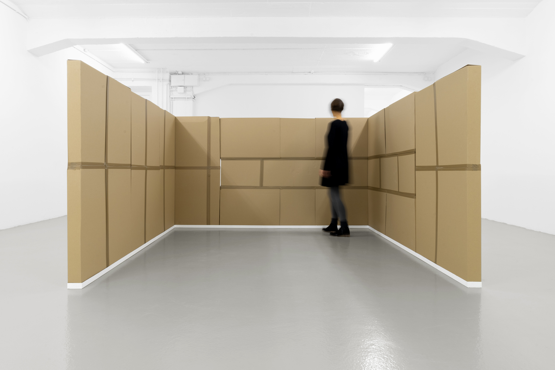 In ihrer Abschlusspräsentation zum Bremer Atelierstipendium 2018 hinterfragt Nora Olearius die Wertberechnung und Rationalisierung von Kunstwerken und künstlerischer Arbeit. Bezugnehmend auf kommerzielle Artotheken, die Kunstwerke unter anderem zur Ausstattung von Büroräumen ausleihen, präsentiert Olearius in Cubicle × Faktor eine Installation aus geliehenen Kunstwerken, deren Wert sie nach der gängigen Formel Höhe + Breite × Faktor neu berechnet, wobei der Faktor ein subjektives Element einbringt. Die verpackten Leinwände formieren ein für Großraumbüros typisches Cubicle – Inbegriff für die Rationalisierung von Büroarbeitsplätzen. Die Kunstwerke bleiben anonym und verwehren ihre Wahrnehmung als ästhetische Objekte. Einzig ihre Abmessungen und Olearius’ idiosynkratische Wertberechnungen – in feiner Handschrift akribisch auf Papier ausgeführt und dokumentiert – geben Auskunft über die geliehenen Kunstwerke. Damit thematisiert Olearius die Absurdität von mathematischer Werterfassung im Kontext ästhetischer Wahrnehmung.