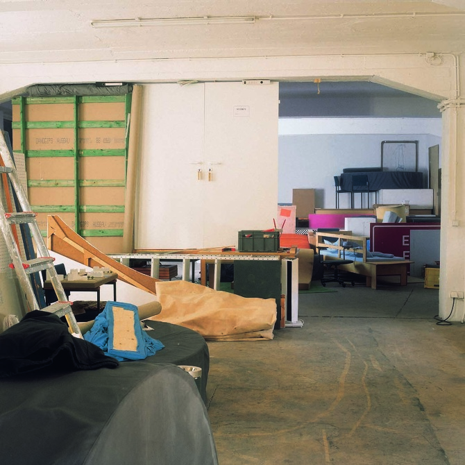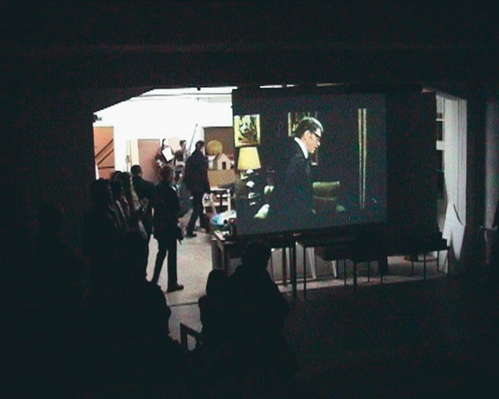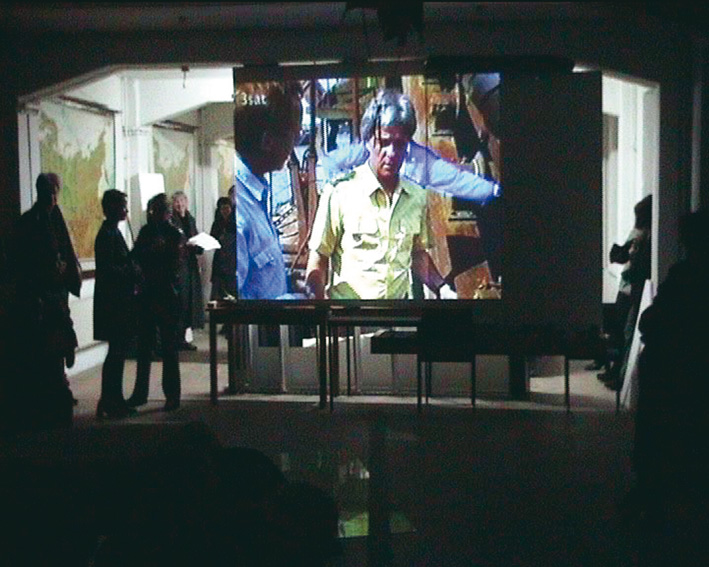 Möbel, Bretter, Vorhänge, Werkzeuge, Landkarten, Bücher, Architekturmodelle, Kleinkram und anderes altes Zeug sowie eine Videoproduktion (Loop 240 min.)