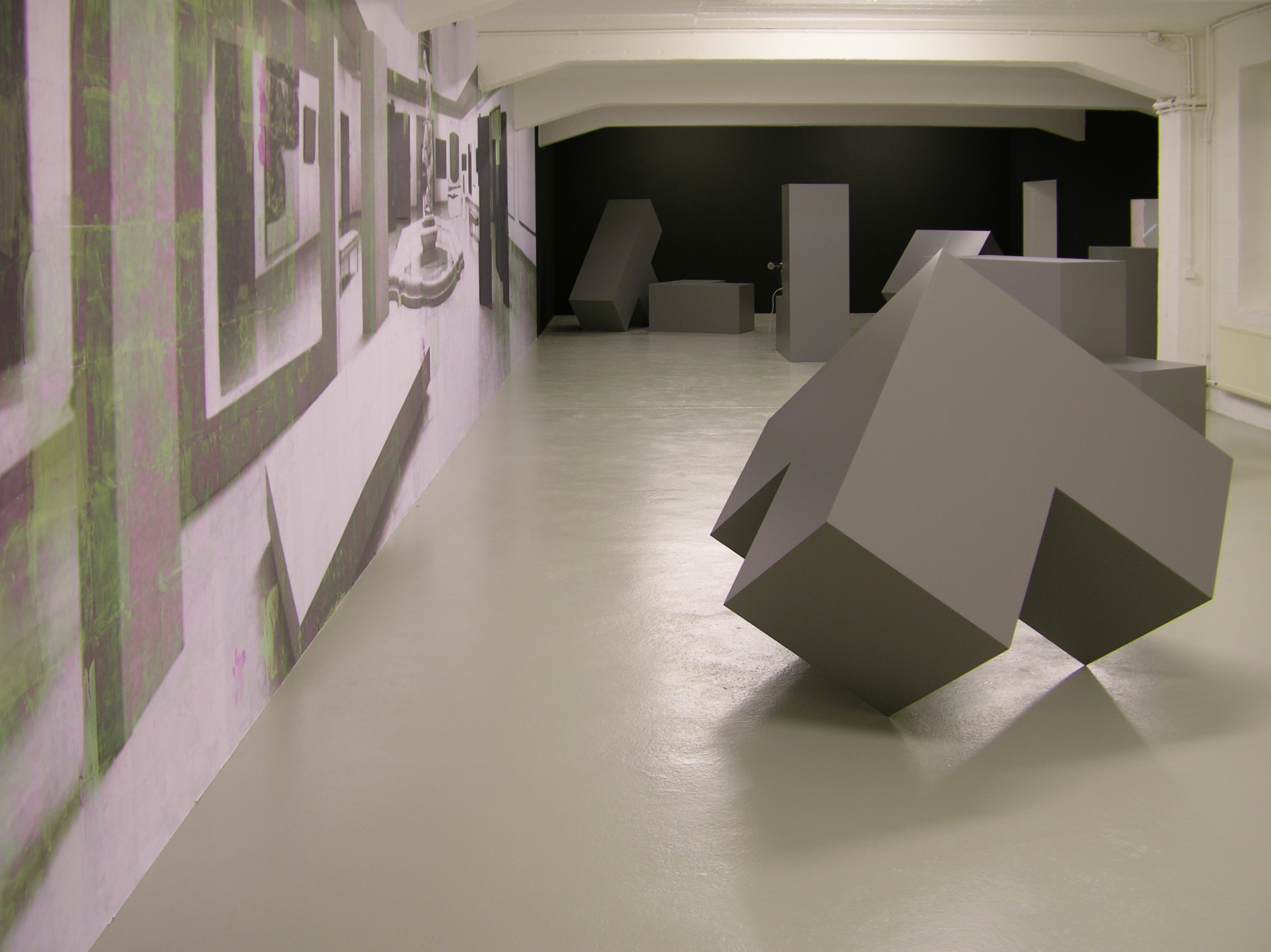 Ähnlich raffiniert funktioniert Soma. Der dänische Mathematiker Piet Hein zerlegte während einer Heisenberg-Vorlesung einen Würfel in ein dreidimensionales Puzzle. Anhand dieser Spiele reflektiert der dänische Künstler Simon Dybbroe Møller die Architektur der Moderne. Wie diese Spiele nahm diese visionäre Architektur für sich in Anspruch, geniale Lösungen für die urbanen und sozialen Probleme zu finden. Oder hätte es derartiger komplexer und logischer Lösungen bedurft, um ihren Ansprüchen zu genügen? Black, White and Gray lautet der Titel der ersten legendären Gruppenausstellung des Minimalismus. In Form von Schwarz-Weiß-Fotografien ging diese schwarze, weiße, graue Ausstellung um die Welt und prägte das Bild des Minimalismus. Simon Dybbroe Møllers farbige Wiedergabe der schwarzweißen Fotografien führt die Ausstellung wieder an den Moment vor ihrer medialen Reproduktion zurück. Irritationen, Suchbewegungen und Rückkopplungen verwickeln den Besucher der Ausstellung Letter from the new world to the old world in ein rasantes Spiel.