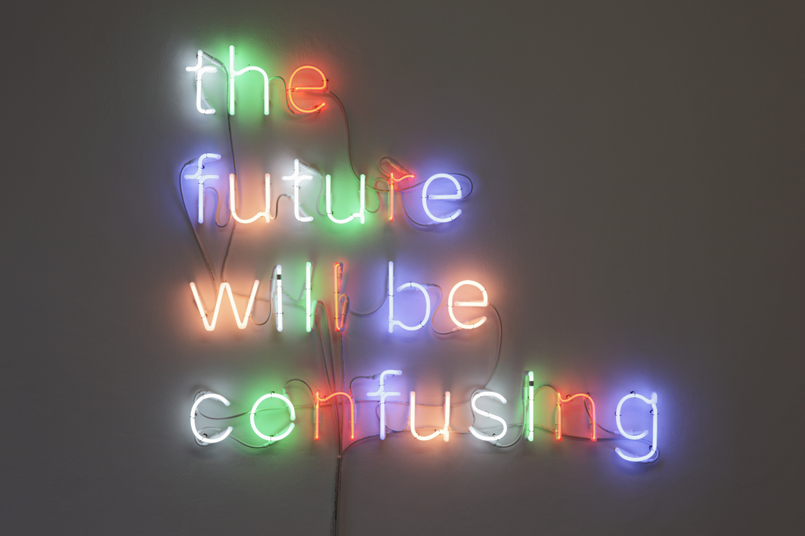 Tim Etchells Ausstellung Fog Game umkreist das Thema Zukunft - ein zentrales Motiv in seinem Werk. Installation, Fotografie, Neonschrift und Video greifen ineinander und widmen sich dem, was kommen könnte. So nimmt Etchells die Veränderungen des Gegenwärtigen, die zwangsläufig mit einer Schau in die Zukunft verbunden sind, auf visueller Ebene auf. Jedes der ausgestellten Werke spielt mit dem menschlichen Verlangen, das Kommende zu kennen und sich auf das, was es bringt, vorbereiten zu können. Vage Vorahnungen vermischen sich mit einem Unbehagen angesichts zukünftiger Ereignisse. Die Sprache ist dabei ebenso Arbeitsmaterial des britischen Künstlers wie kulturelle Codes, die sich in Symbolen und Zeichen manifestieren. Etchells untersucht die Kraft dieser allgegenwärtigen Verständigungsmittel. Anhand von Erzählungen oder Chiffren testet er Assoziationen und Gefühle, die sich mit spezifischen Wörtern und Bildern verbinden und macht sich dabei deren Dynamik und Facettenreichtum zunutze.