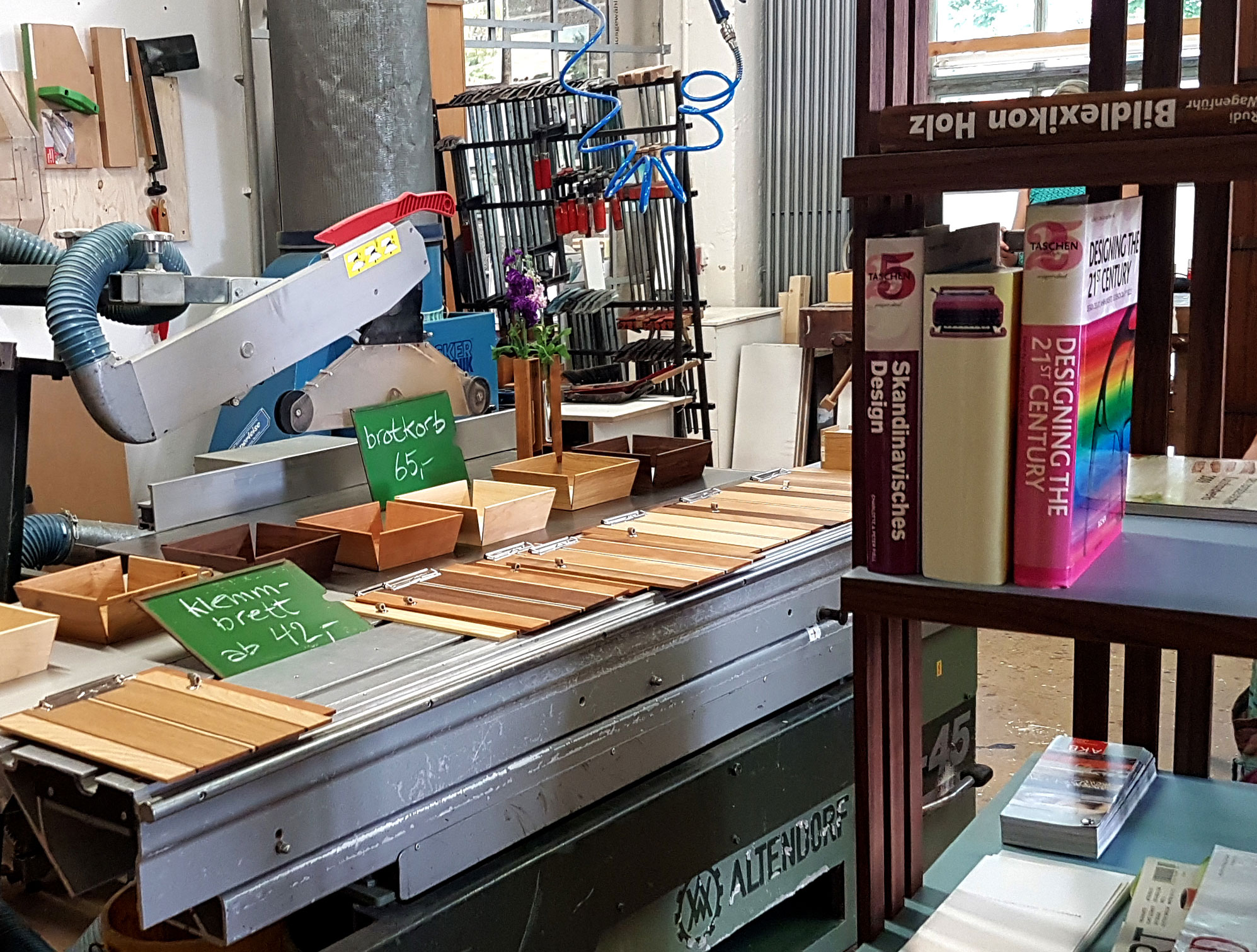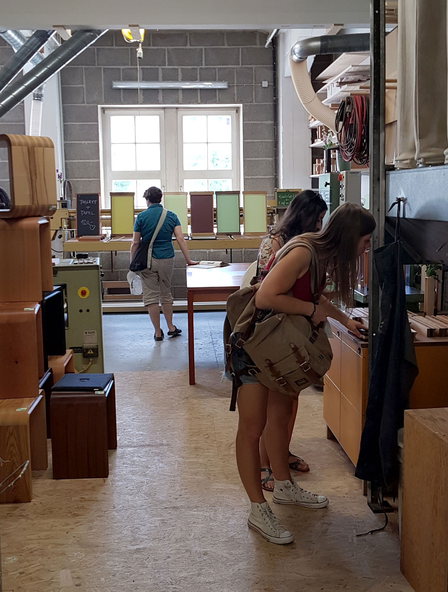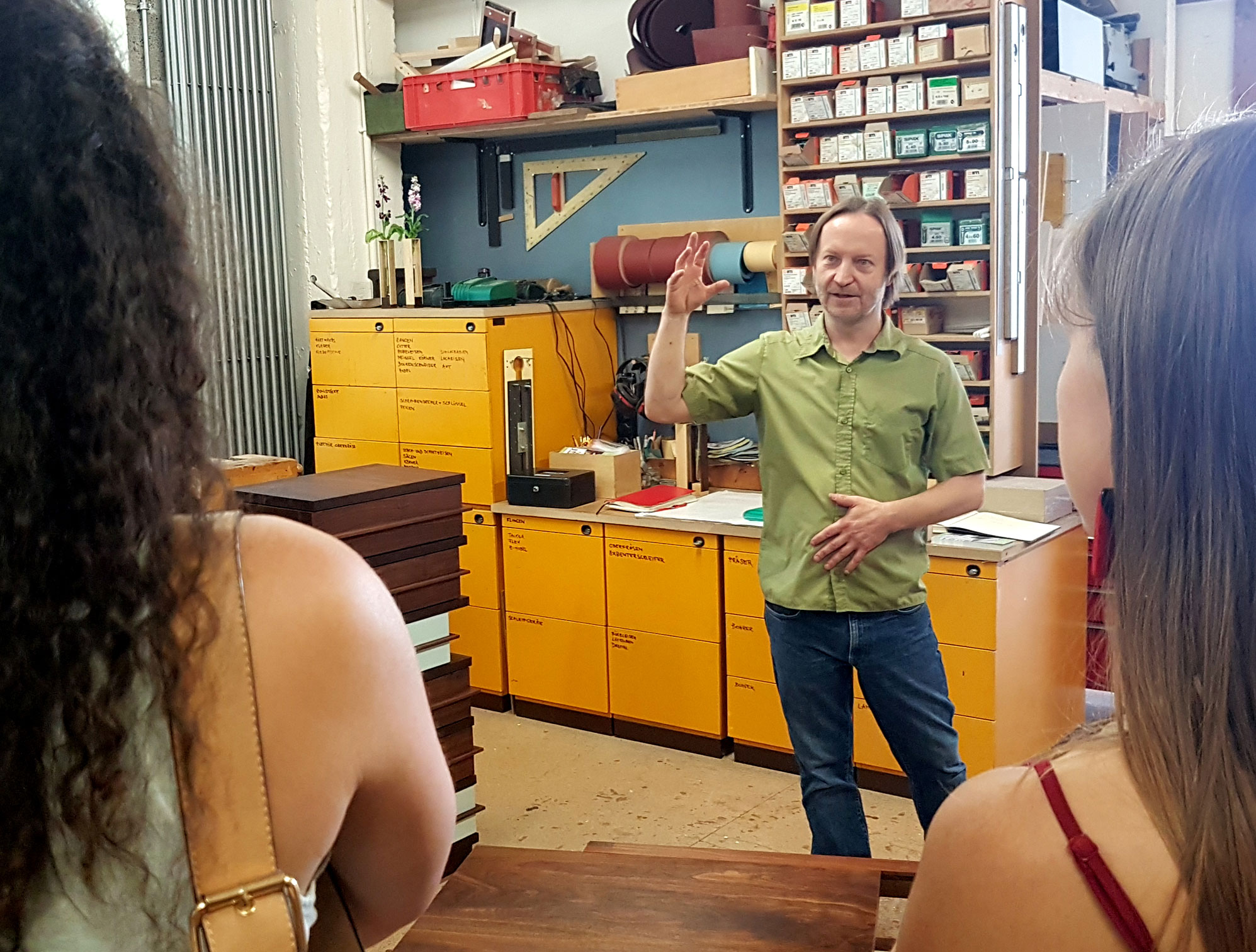 Der daran anschließende Atelierbesuch bei Martin Wilmes, Möbeldesigner, der seit 2017 seine neue Werkstatt bei uns eingerichtet hat, gab einen faszinierenden Einblick in sein Schaffenswerk und den Arbeitsprozess. Seine zeitlos schönen Unikate (Kleinserien, Möbel und Wohnaccessoires) überzeugen vor allem durch ästhetische Wandelbarkeit und funktionale Intelligenz. Der Künstler führte die Besucher*innen persönlich durch seine Werkstatt und stand für Fragen zur Verfügung.