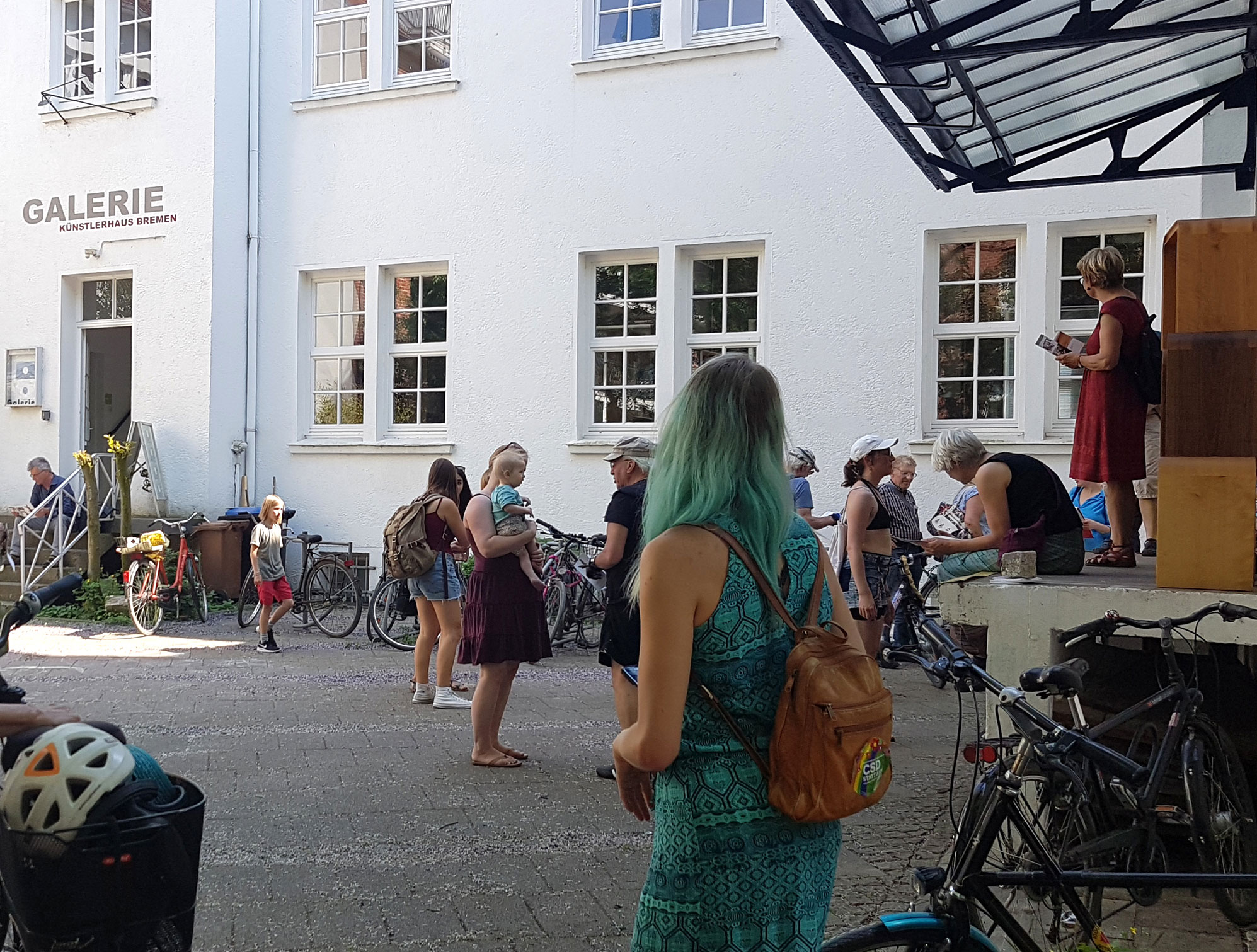 Im Rahmen der offenen Ateliers in der Bremer Neustadt fand am Samstag, den 26.05.2018 eine Führung mit Birthe Brandes aus der Kulturwerkstatt Buntentor statt. Die zahlreichen Teilnehmer*innen und Kunstinteressierten starteten die Tour gemeinsam bei uns in den teilnehmenden Ateliers im Künstlerhaus Bremen.