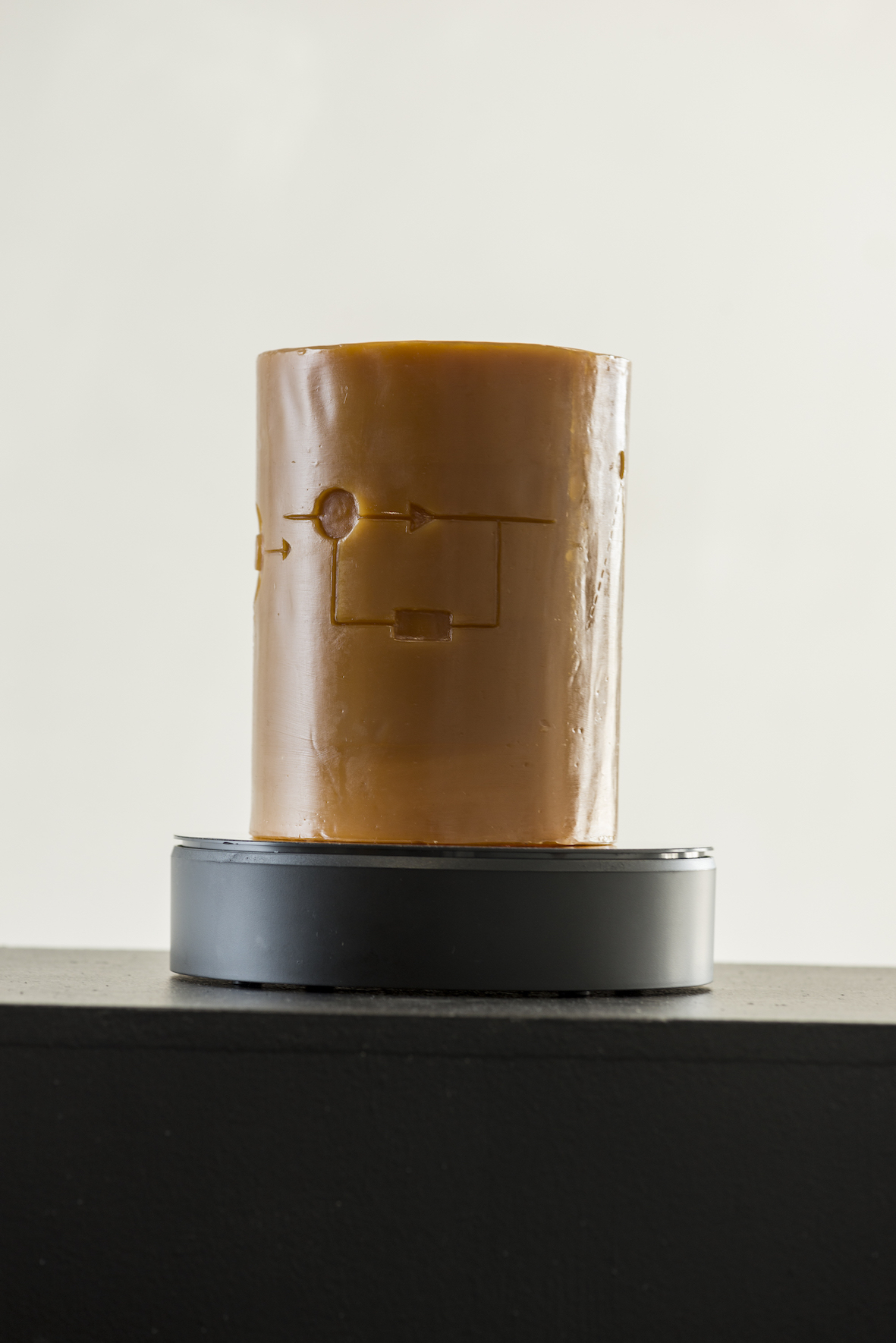 Gedanken über Wachs, Denken wie Wachs. Der Einfluss äußerer Faktoren auf das Erscheinungsbild von Wachs, sowie dessen Verwendung für Tonaufnahmen in früheren Zeiten, machen Wachs zum geeigneten Material für meine Untersuchung."