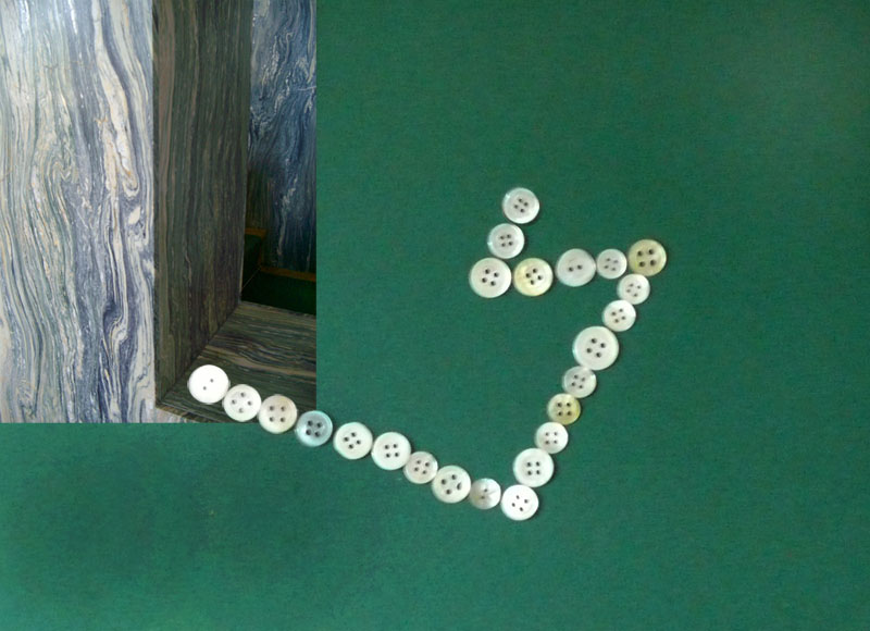 Das Interesse für private sowie öffentliche Bauten und ihre Wirkung zeigt sich in zahlreichen Arbeiten von Julia Horstmann (*1974 in Hamburg, lebt in Berlin). Auch in der Fotografie o.T. beschäftigt sie sich mit Architektur, diesmal mit dem Haus Müller in Prag, das von dem Architekten Adolf Loos gebaut wurde. Für ihre künstlerische Auseinandersetzung mit Person und Bau wählte Julia Horstmann die Gegenüberstellung zweier kontrastreicher, gegeneinander abgegrenzter Farbräume, die mittels Perlenknöpfen wieder miteinander verbunden werden. Loos fordert in seinen Schriften, Knöpfe sollten wie Architektur unauffällig und zurückhaltend sein. Im Gegensatz hierzu pflegten die Pearl Kings and Queens in London ihre Kleidung mit diesem Zierrat zu schmücken und aufzuwerten. In Julia Horstmanns Fotografie der eigenen Collage synthetisiert sie beide Auffassungen. Die Knöpfe fungieren als Bindeglied zwischen den beiden räumlichen Ebenen und der Betrachter blickt dergestalt auf verschiedene Aspekte von R o.T., 2008 Raumkonstellationen.