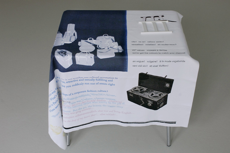 4c-Digitaldruck auf Stoff, Porzellan made by Fürstenberg, Verpackung aus schwarzer Kartonage