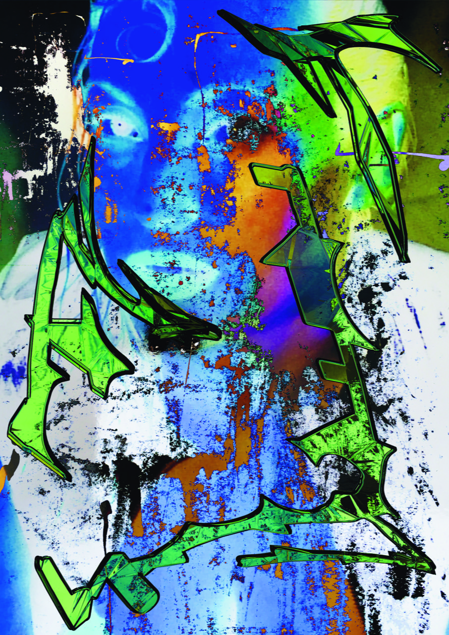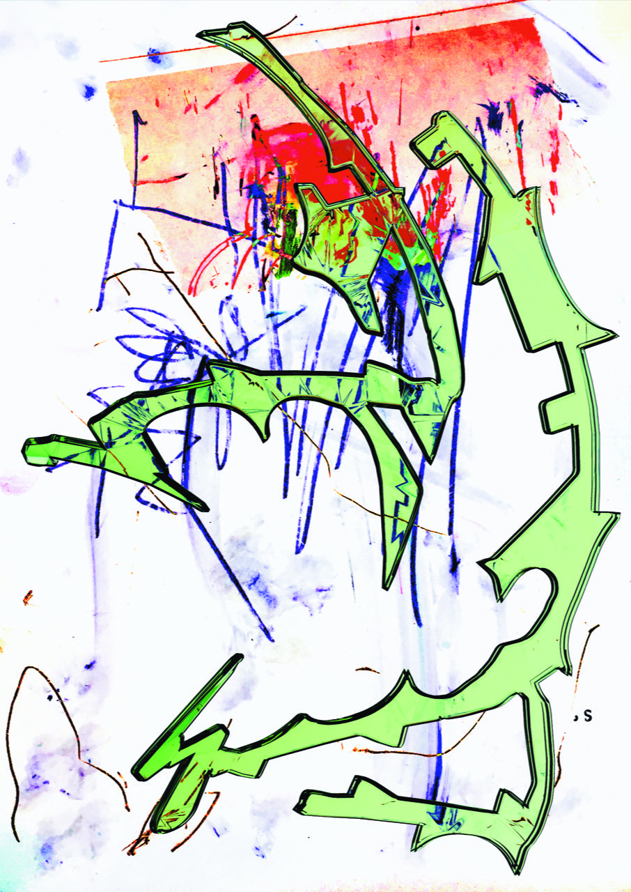Die drei Plakate von Heike-Karin Föll spielen als Serie mit dem Paradox einer flachen Oberfläche als Träger der plastischsten Illusion eines dreidimensionalen Raumes. Schichten aus Zeichnungen mit Spuren von Fotografien und grünen, transparenten Zeichen, die sich wie Kratzspuren über die Oberfläche ziehen kehren unsere Erwartungen an einen entleerten Raum um. Während sie sich Schriftstilen wie hebräisch, arabisch oder kyrillisch annähern zu scheinen, könnten sie auch als Chiffren universeller Schrift interpretiert werden, die alle Archetypen der Schrift komprimieren.