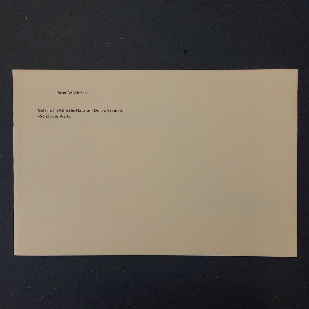 Peter Wüthrich - So ist die Welt. Dokumentation der Installation "So ist die Welt", mit Texten von Harm Lux.