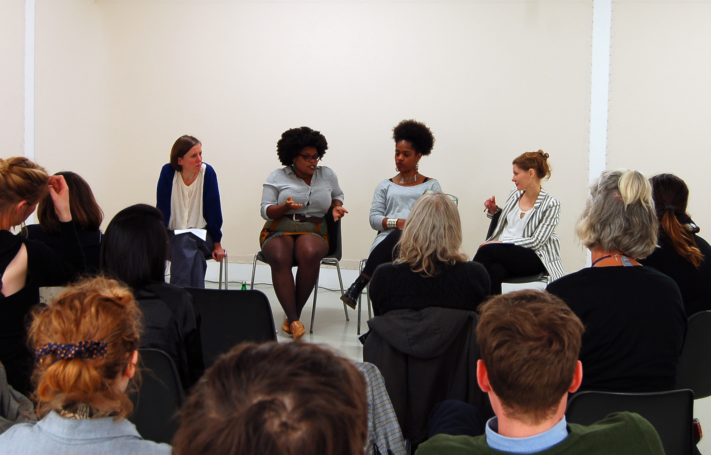 Mit Julia Binter (Kultur- und Sozialwissenschaftlerin, Kuratorin der Ausst. DerBlinde Fleck in der Kunsthalle Bremen), Dr. Natasha A. Kelly (Kommunikationswissenschaftlerin und Soziologin, Forschungsschwerpunkte Post-/Kolonialismus und Feminismus) und Dr. Janelle Rodriques (Wiss. Mitarbeiterin, Postcolonial Literary and Cultural Studies, Universität Bremen) – anlässlich der Ausstellung Being sad is not a hobby von Henning Fehr und Philipp Rühr.