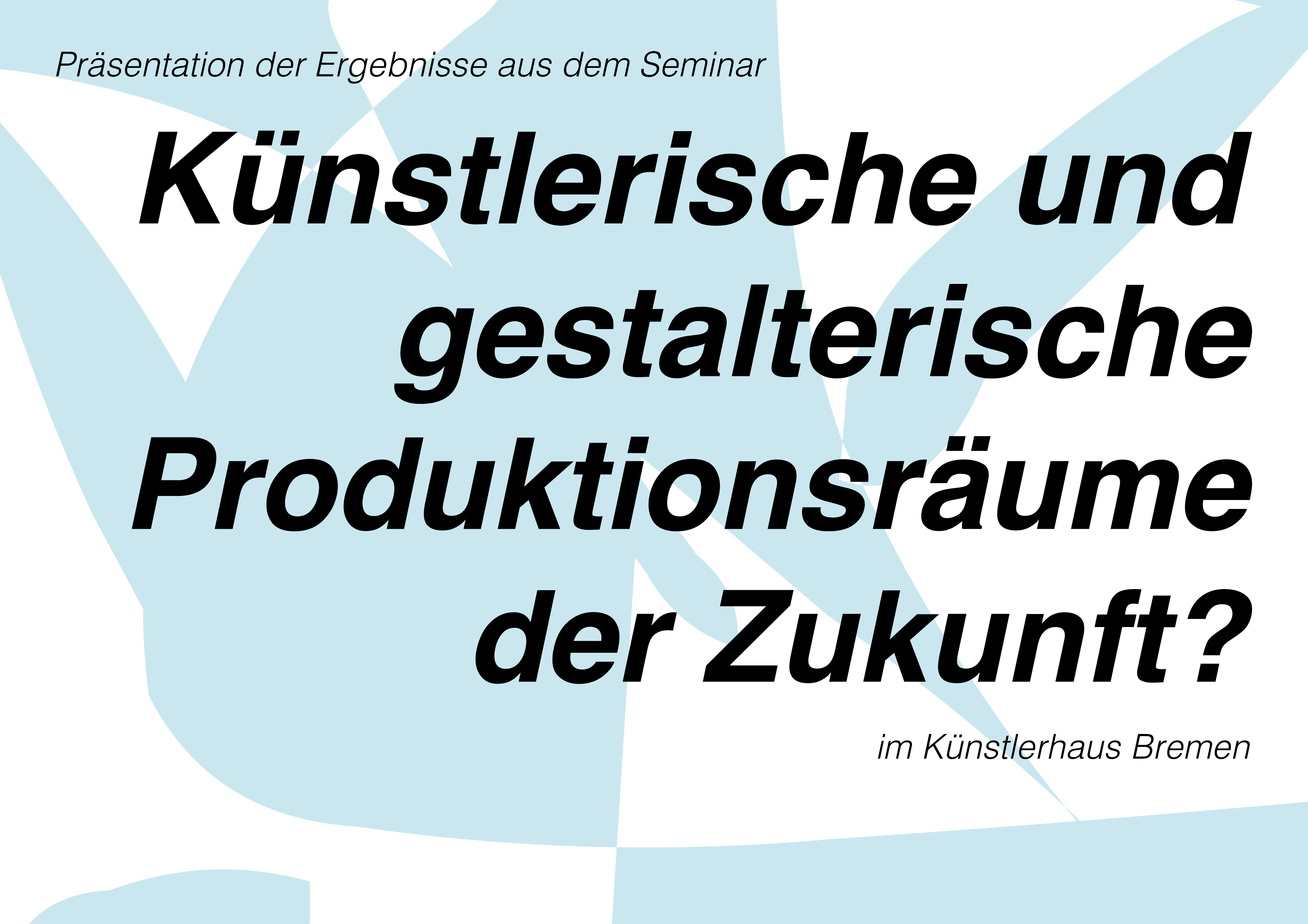 In Kooperation mit dem Seminar Künstlerische und gestalterische Produktionsräume der Zukunft? von Prof. Dr. Mona Schieren an der Hochschule für Künste Bremen.