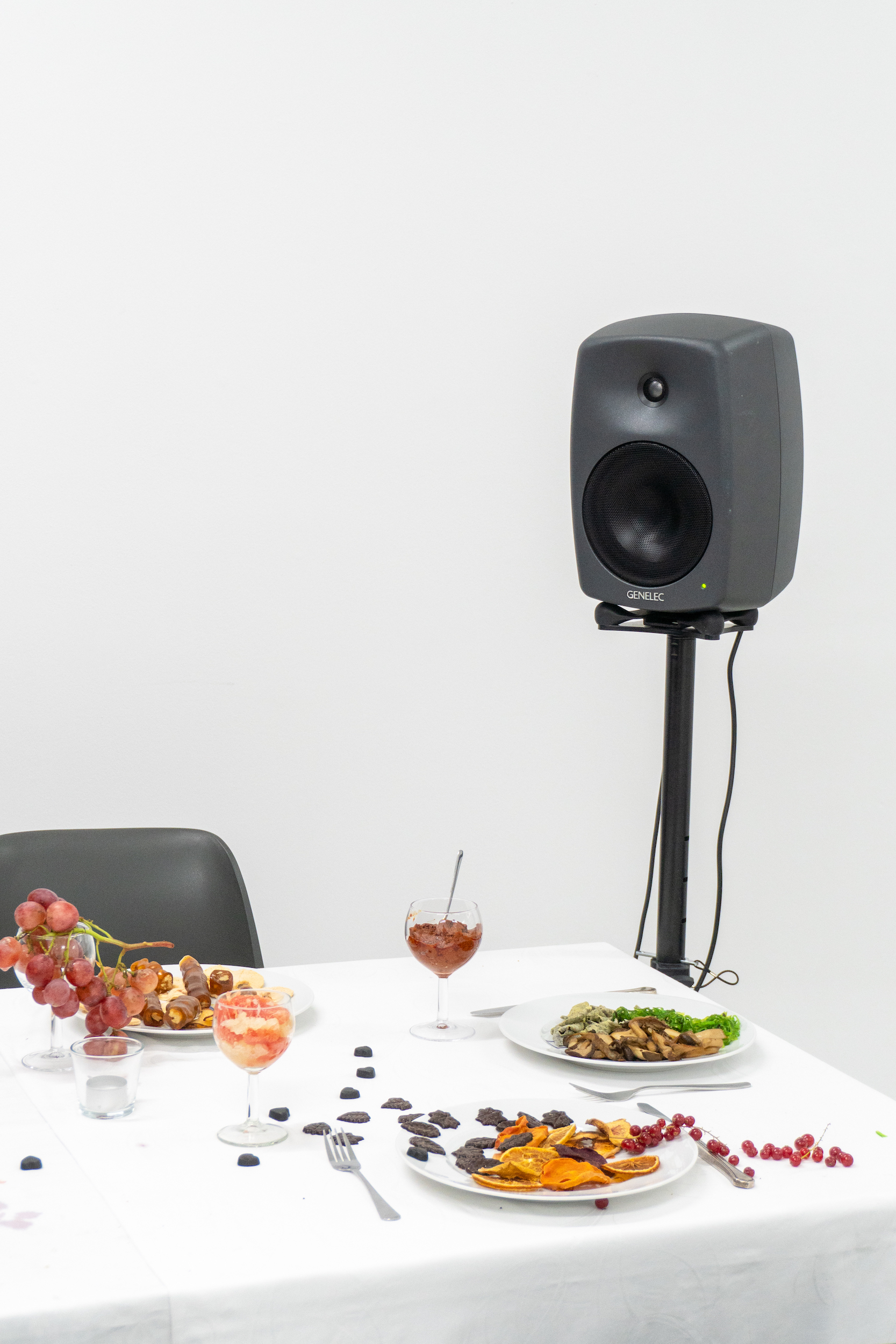 Eine Audio-Vibrations-Installation, ein Buffet, eine Rosen-Umpflanzungszeremonie