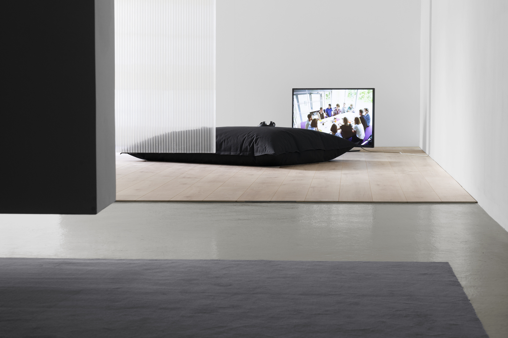 With "The Inner Office" Alina Schmuch presents a new video work which explores the design of internal and external processes in new work environments. How do holistic approaches to work, which are centered around personal development and individuality, manifest themselves in architecture, language and design? With her subtle, distanced view, Schmuch films workspaces in headquarters of companies from the creative and high-tech industries, coworking spaces, as well as workshops and seminars on leadership, storytelling and the future of work. The artist shows visual, architectural and linguistic structures that embrace holistic thinking, spirituality, and concepts of empathy and mindfulness, which the globalized economy has appropriated from the cultural sphere and the countercultures of the 1960s and 70s. Schmuch’s work reflects the structures that serve to optimize work processes while the work itself becomes increasingly invisible. In the exhibition, the artist transfers new film footage from her extensive research in Germany, California and the Philippines together with photographic and architectural elements into a spatial installation.