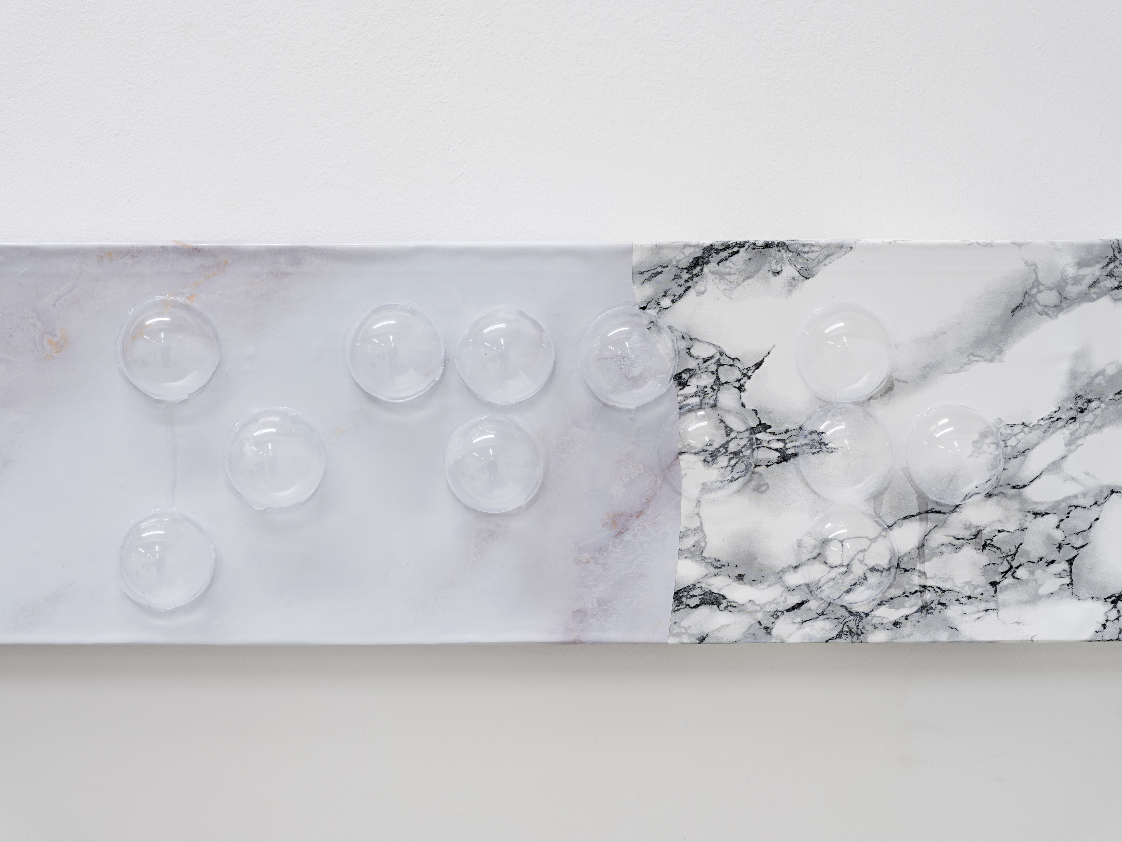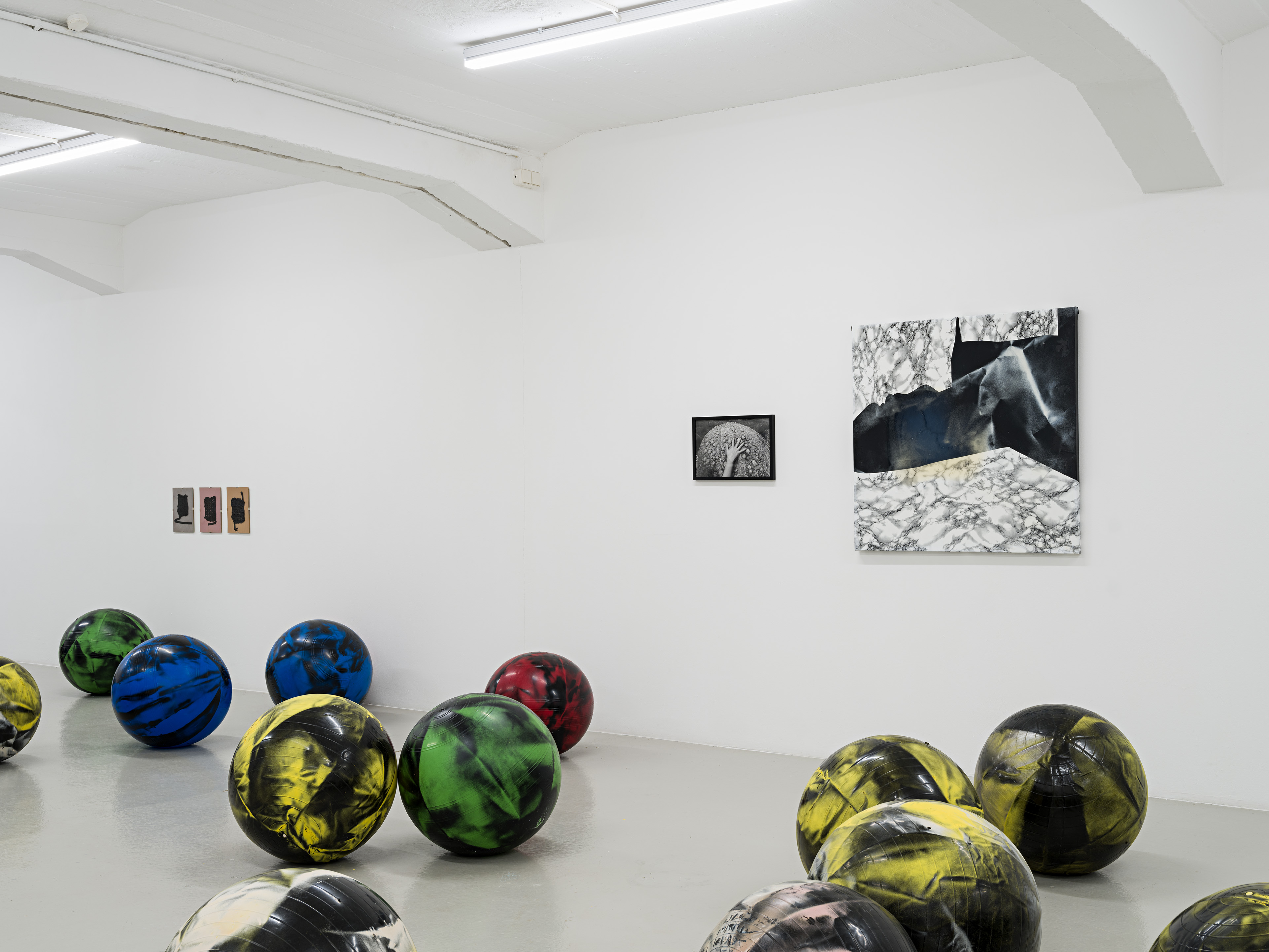 Rebekka Kronsteiner works at the intersection of painting and sculpture. Her works are characterized by tensions between image and object, imagery and pictorial support. The artist draws on industrially produced or found materials from the urban context, such as wax, latex, foils, textiles or Plexiglas. She works with these by layering or painting them - if possible without making a personal style visible. Kronsteiner is interested in processes of incidental imaging through processing and the resulting processes of decay. The materials age, fade, turn yellow or become porous. Kronsteiner plays with expectations and attributions of value. What strategies of transformation or reorganization are possible?