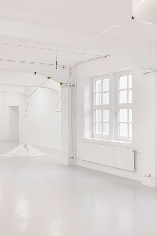 The works in the group exhibition Das Unerwartete erwarten (Expecting the Unexpected) testify to the sculptors; desire to experiment, their delight in danger. These works are unstable in character, hover between disintegration and stasis. And even if an unexpected destruction does not necessarily happen, it is an inherent threat, that is to say, it is immanent in the work. Halted movements, vanishing materials, or surfaces that are taut to the point of bursting give rise to a particular kind of tension. One could speak of suspense in sculpture. Suspense is a term from cinematography. It derives from the Latin suspendere, to hang, and means something like hovering in uncertainty as regards a feared or hoped for event. And it is precisely here that the above-mentioned works start to oscillate; here is the basis of one of their fascinating aspects: tension arises due to a particular situation, an event threatening to come about. We are gripped by the prospect of an event that does not necessarily happen, but could. We recipients see this something lurking right in front of us. Enlightened and prepared, we recognise what has happened, could happen or will happen. Suspense is the result of questions regarding how a story is to proceed being left unanswered. Something is announced, yet is held in abeyance. A game begins with expectations, with curiosity, and with the hope for a redemptive bang.