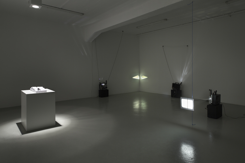 Wolfgang Plöger’s fascination is with the moving image, in particular 16mm and Super8 film. He makes drawings, which can turn out to be both realistic and narrative in character as they are formal, reduced, symbolically linear expressions. Due to their subsequent filmic transformation the motifs are set into motion and, without losing any of the raw charm of their recognisably hand drawn nature, they begin to jump around within the surface area of the projection. But the works do not adhere to two-dimensionalism for, through the tension between floor and ceiling of the filmstrip, they stretch out into three dimensions. Beside the swiftly changing image sequences and the rattling of the projectors, long film loops cut hurriedly across the room. In this way the celluloid itself along with the projectors become an essential element of the exhibition in their very materiality. Emanating from Wolfgang Plöger's multipart animated film Untitled filmic and graphic works are shown in to the point which seize on dots and lines as original artistic expression, their inherent complexity being mediated through the extrapolation in which narrative and geometric form flow into one another.