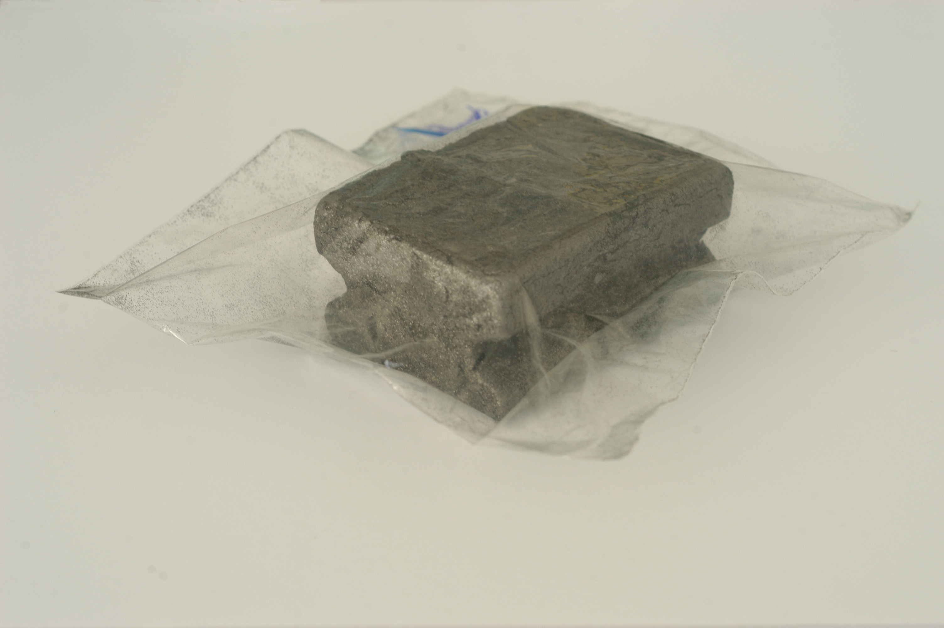 Household sponge, graphite, wood glue, sealed in plastic bag
