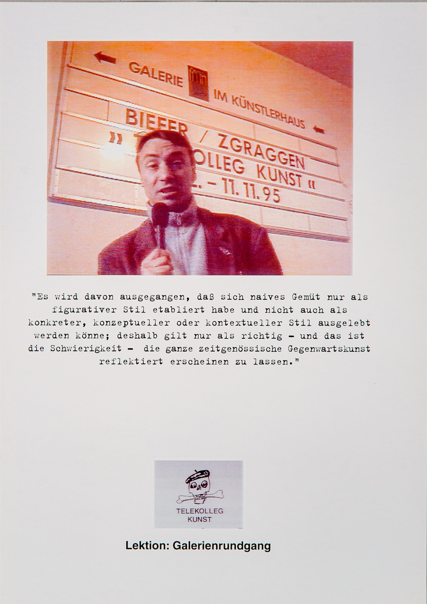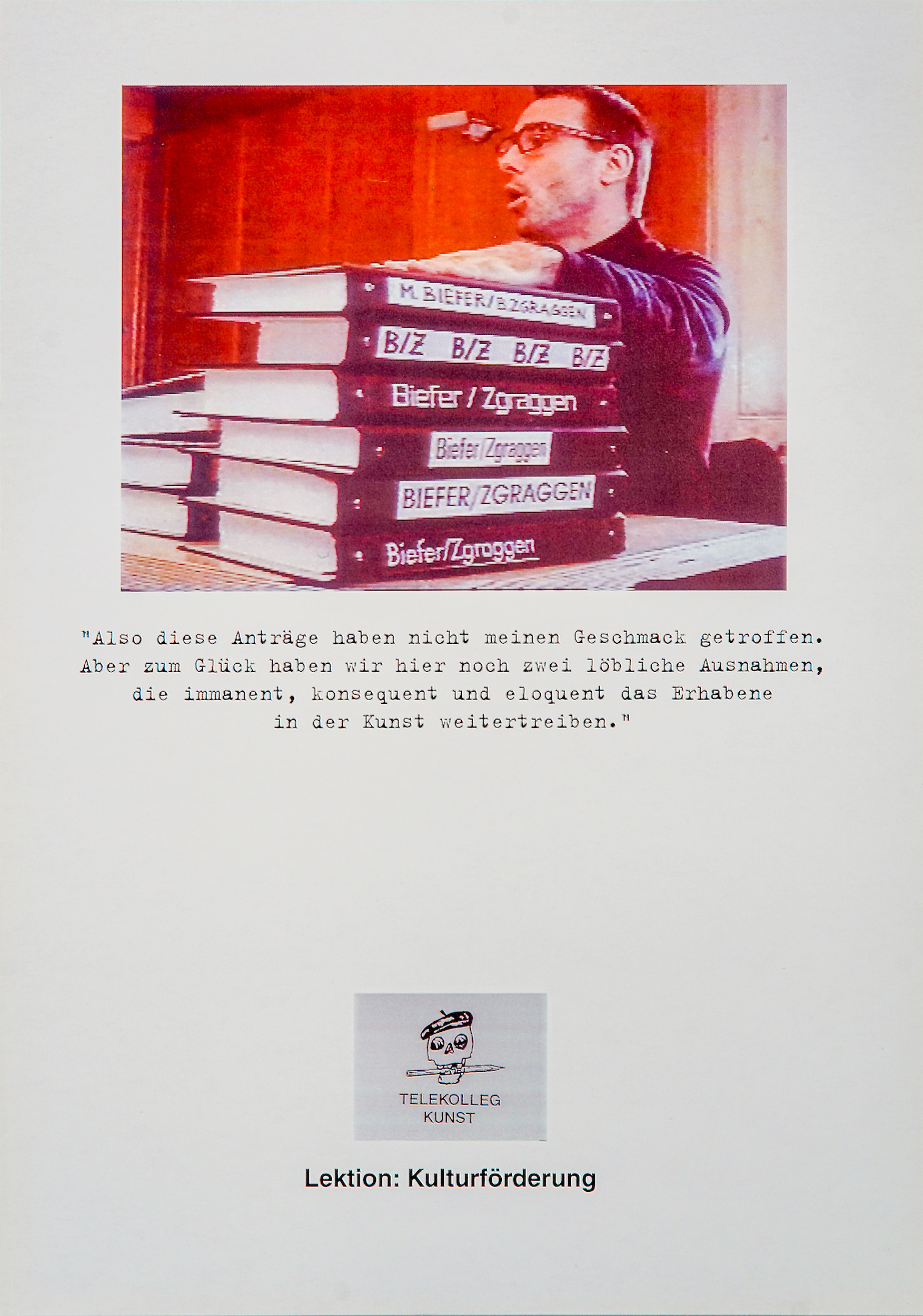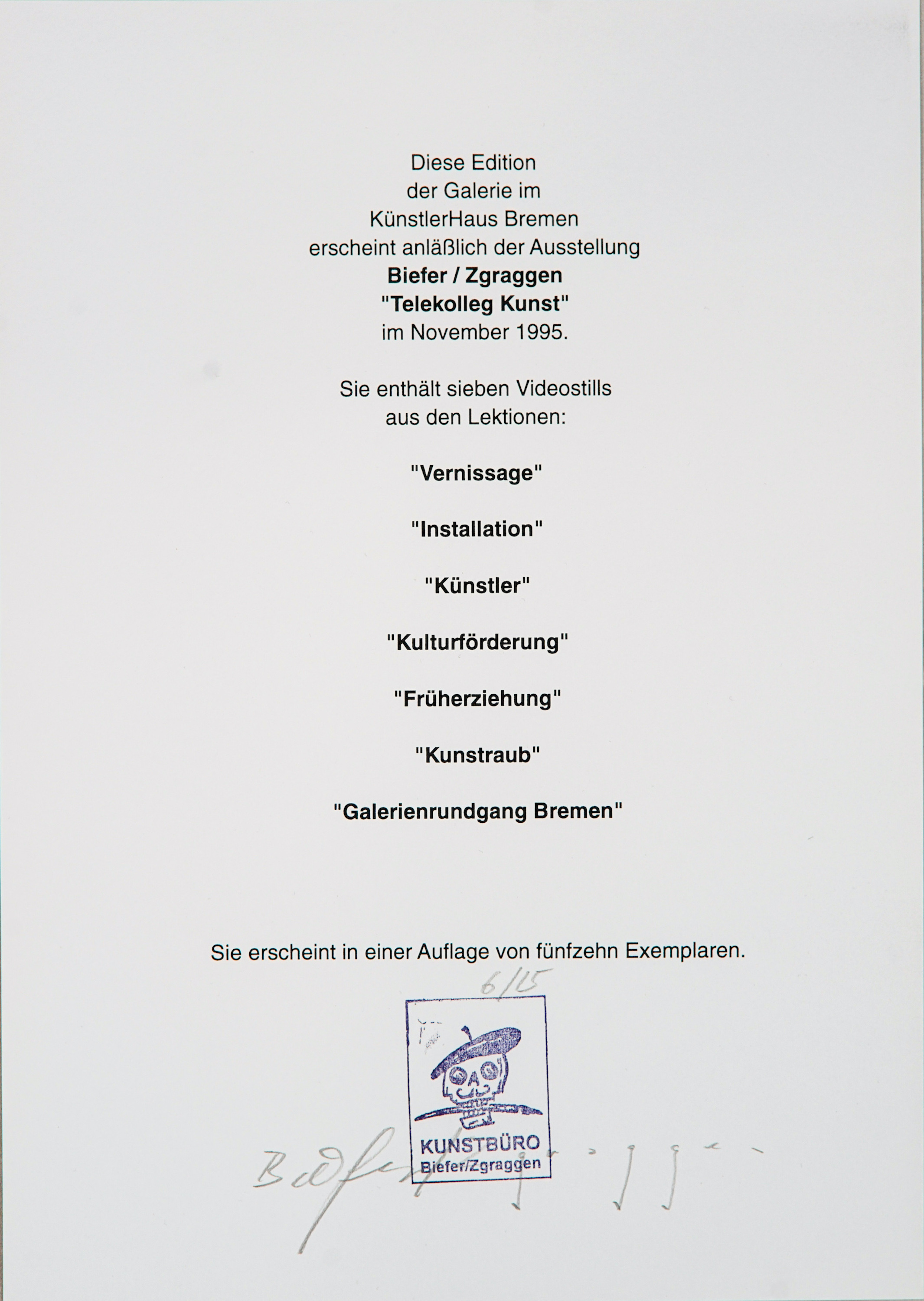 This edition was published on the occasion of the exhibition Biefer/Zgraggen Telekolleg Kunst in November 1995.