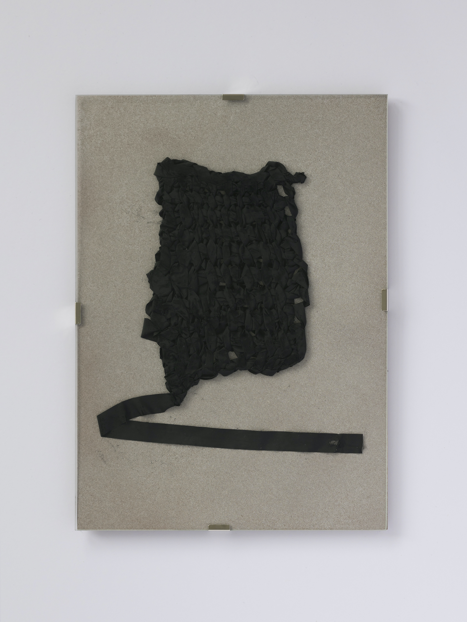 knitted/crocheted typewriter ribbon, lacquer, frameless picture holder