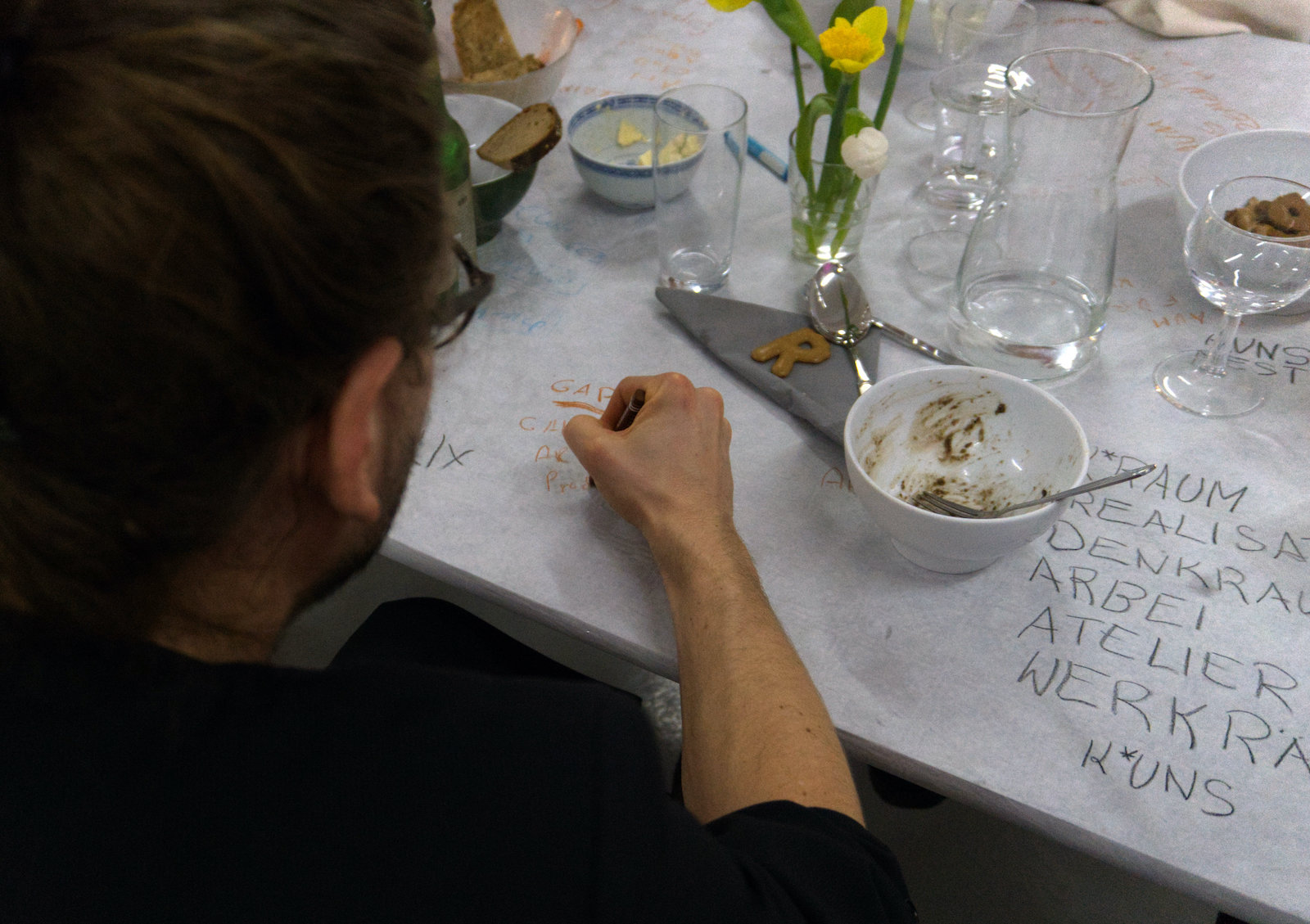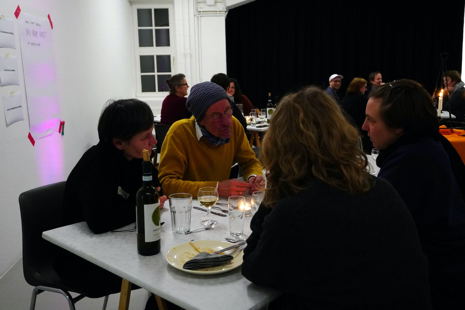 The Künstlerhaus Bremen is looking for a new gender-appropriate name and what is more inspiring than a shared dinner in a relaxed atmosphere? Last Friday current and former members as well as guests from other studio and residency buildings came together to exchange ideas over dinner. What could be a suitable name for a studio, residency and exhibition house that encompasses all this and excludes no one? From the productive conversations, new suggestions were developed that are now being further discussed and voted on in the members’ meeting of the association.
