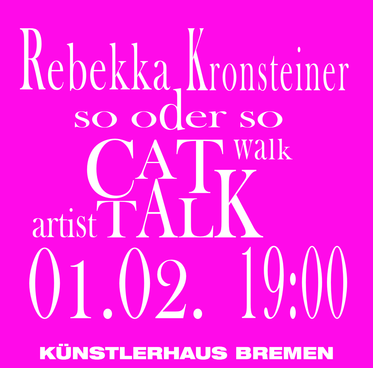 In an experimental artist talk in the form of a cat walk, the 2023 Bremen studio grant holder Rebekka Kronsteiner will answer questions about her practice, the works in the exhibition and her scholarship in her exhibition "so oder so", which runs until February 4.